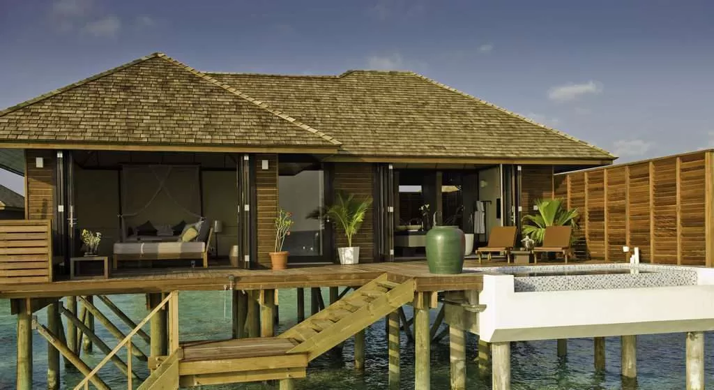 Sunset Water Suite (4 номера, 182 кв.м) – индивидуальные виллы над водой. В номере кровать с балдахином, большая терраса, джакузи,