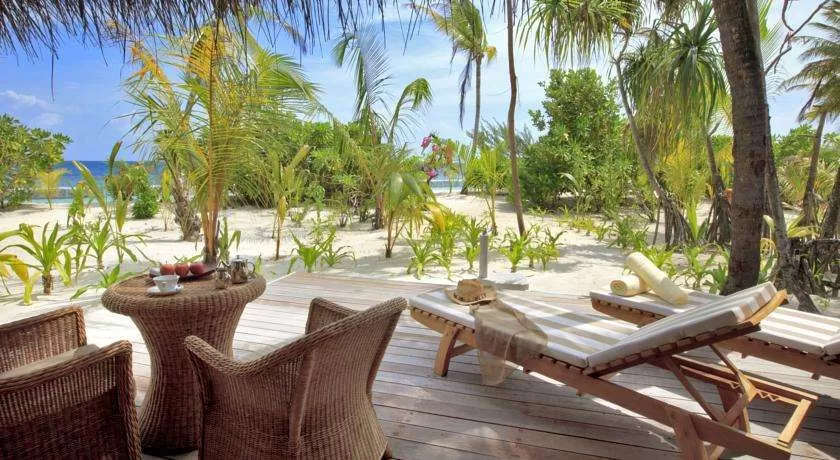 24 Beach Villa (112 м2, макс. 3 или 2+2 чел.). Просторные виллы с террасой, расположенные на небольшом удалении от пляжа среди тропической растительности. Ванная комната частично на открытом воздухе: две раковины, душ, а также ливневый душ в небольшом садике.