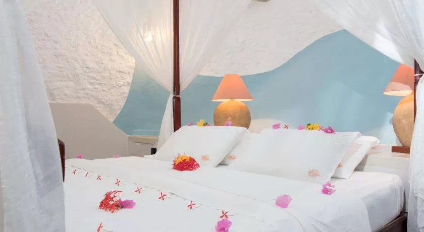Все бунгало, имеющие форму ракушки, построены из натуральных материалов, особенности архитектуры создают дополнительный объем воздуха и обеспечивают прекрасную вентиляцию, позволяющую обходиться без кондиционера, большая гостиная, спальня, вентилятор, мини-бар, внутренний телефон, оборудование для приготовления чая/кофе, ванная комната/душ, фен, пляжные полотенца, банные халаты, собственный пляж