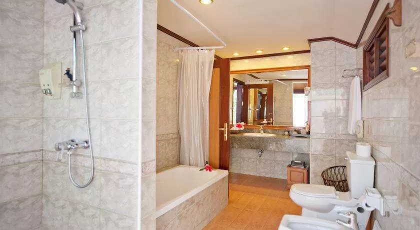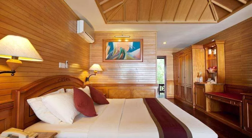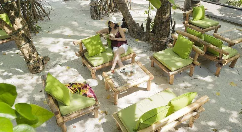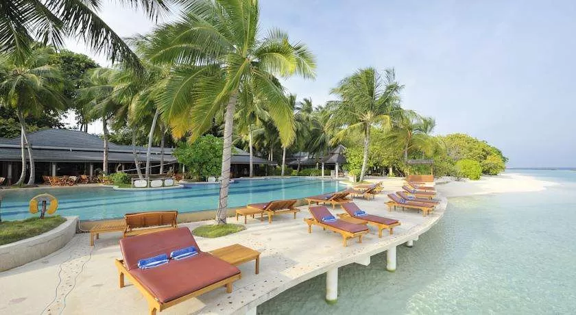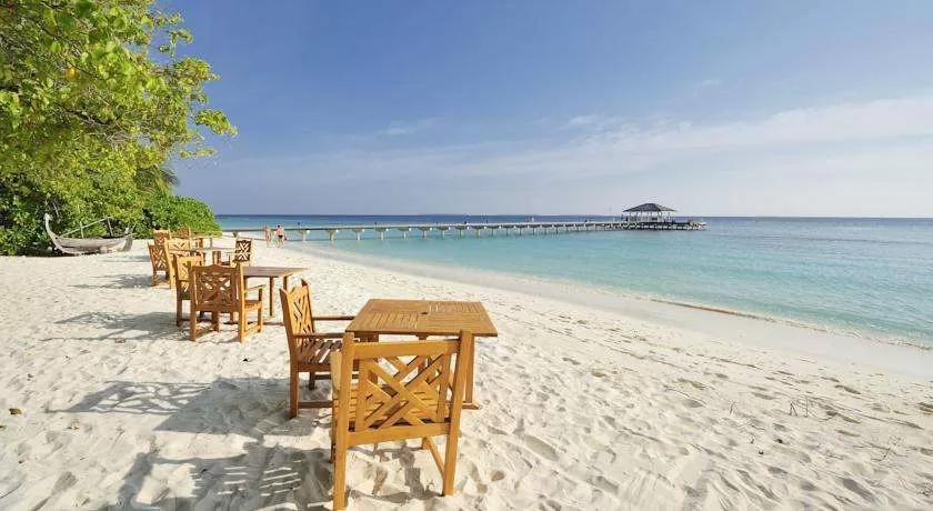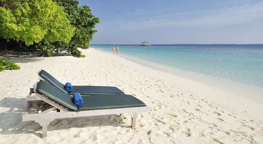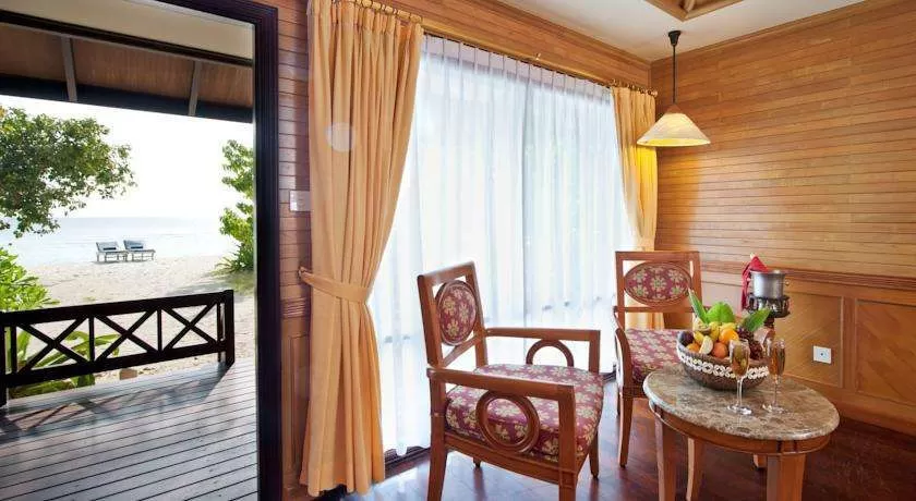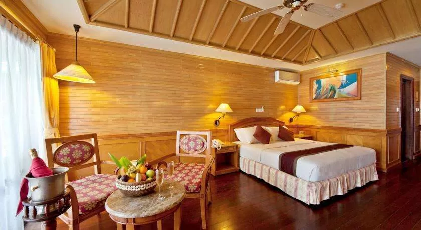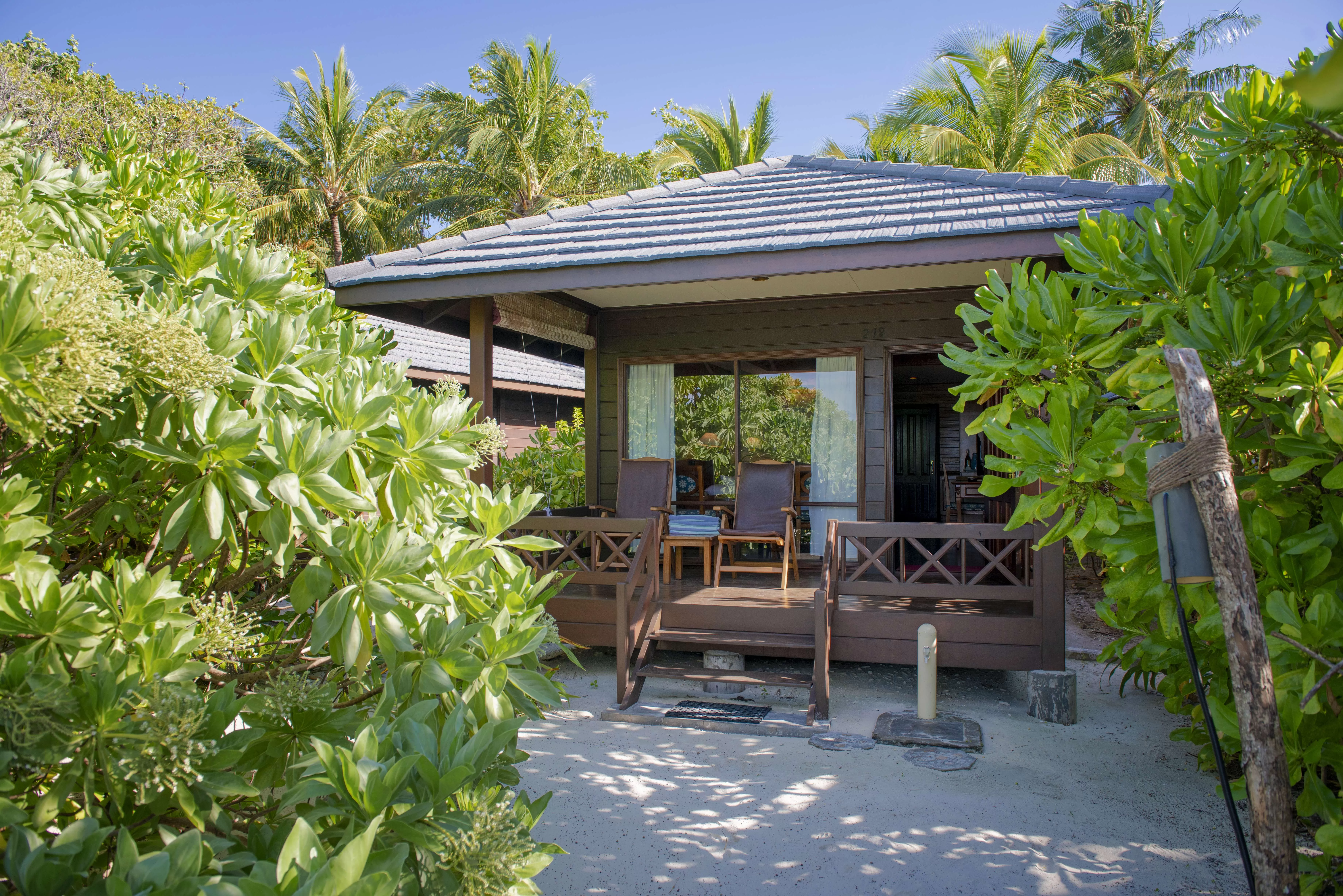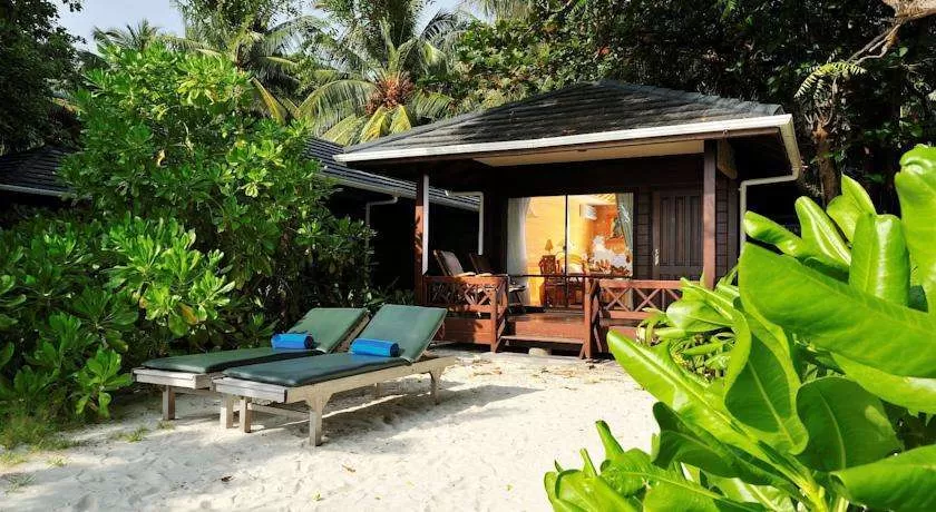 148 Beach Villa (31 м2, макс. 3 или 2+1 чел.). Одноэтажные отдельно стоящие береговые бунгало, из них 20 номеров в смежных бунгало. У каждого номера есть свой приватный участок пляжа, шезлонги. Отделка номера выполнена из редкого дерева мерабу.