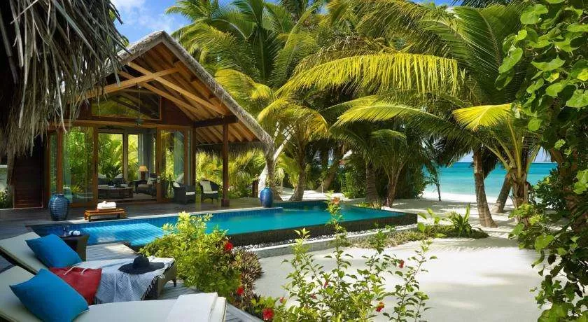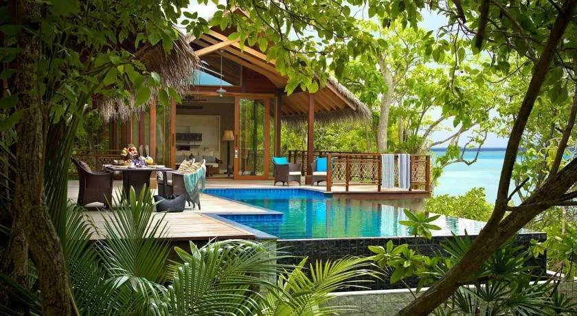 1 Villa Laalu (957 м², внутренние помещения 472 м², макс. 6 или 4+2 чел.). Эксклюзивная вилла для взыскательных гостей, самый роскошный номер курорта. В дизайне интерьера гармонично сочетаются азиатские стили. Украшена артефактами и скульптурами из Индонезии, Шри-Ланки и Таиланда. 2 просторные спальни с высокими потолками, гостиная, открытые веранды и обеденные павильоны. Основная ванная комната на открытом воздухе имеет большую ванну для двоих. SPA-павильон, сауна, тренажерный зал, кабинет, спальня для собственного персонала или секьюрити. Круглосуточный сервис Villa Host