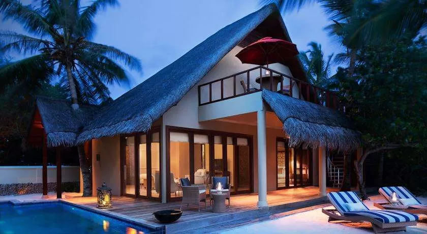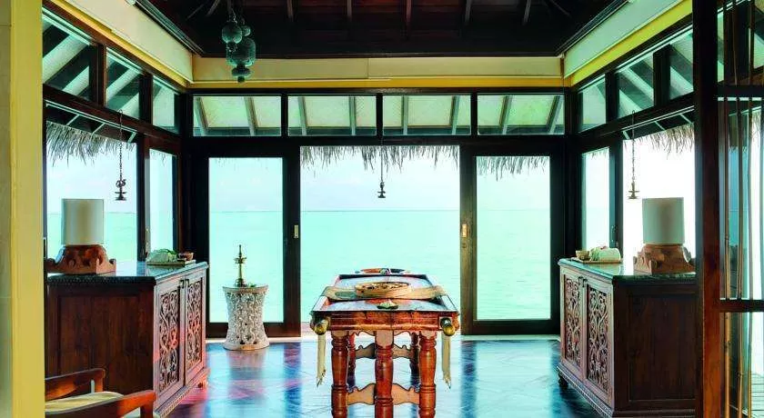 1 Rehendi Presidential Villa (500 м², макс. 5 чел.). Отдельно стоящая надводная вилла с 2 спальнями (примыкающие 2 ванные комнаты), гостиной, 2 беседками – обеденной и для релаксации, частным бассейном (12 м), надводным гамаком, приватной верандой и террасой, заполненной мелким белым песком. Check-in в номере, встреча в аэропорту с индивидуальным батлером, шампанское по приезду, шоколад, возможность заказа завтрака в номер, бесплатный Wi-Fi (до четырех устройств), халаты с персональными инициалами, коктейли на закате (1 раз за время отдыха)