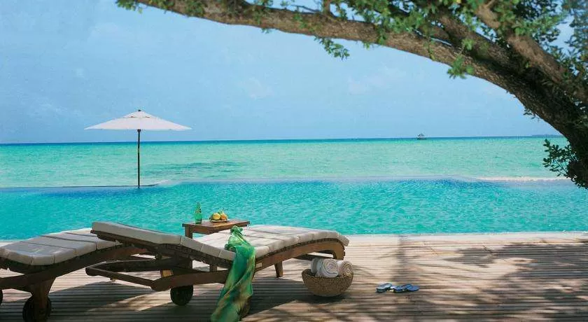 31 Deluxe Lagoon Villa with Pool (94 м², макс. 3 или 2+2 чел.). Отдельно стоящие водные бунгало на удалении от острова. Дополнительно к Lagoon Villa имеют просторную террасу с тахтой, бассейном и видом на океан.