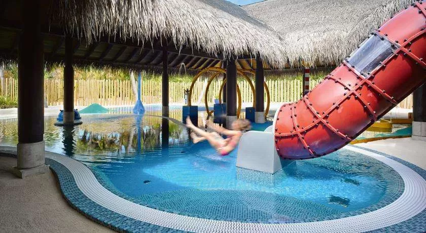 Водные горки: 1, детское меню в ресторане, детская площадка, детский бассейн: есть, детский буфет (обеденная зона на открытом воздухе в детском клубе), детский клуб (4–12 лет, бесплатно, дети до 4 лет должны быть в сопровождении няни – платно), услуги няни: по запросу, платно, анимационная программа для детей