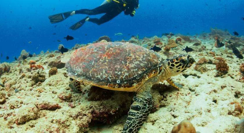 Стильный курорт, получивший свое название в честь особого вида черепах, обитающих на Мальдивах. Отель спроектирован чешским архитектором Петром Коларом, который сумел совместить элементы традиционной мальдивской культуры с современными технологиями и изысканным дизайном. При строительстве вилл были использованы натуральные материалы