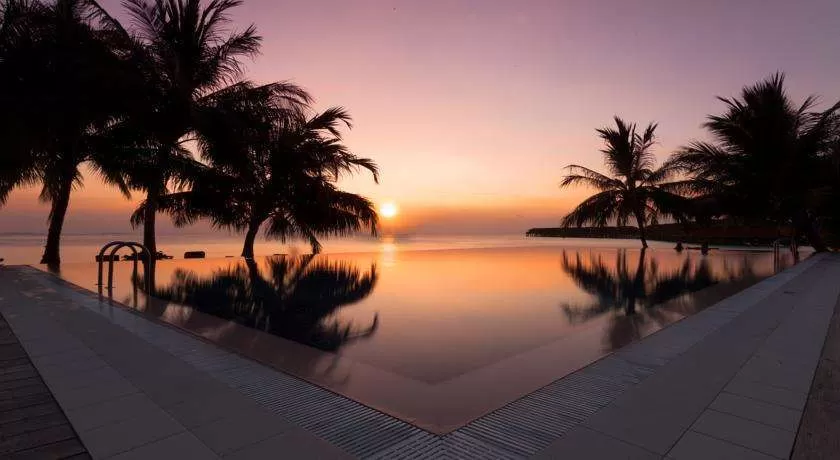 111 Beach Villa (55 м2, макс. 3 или 2+1 чел.). Береговые виллы с видом на лагуну, кровать с балдахином, пол – плитка, ванная находится частично на открытом воздухе, мини-садик.