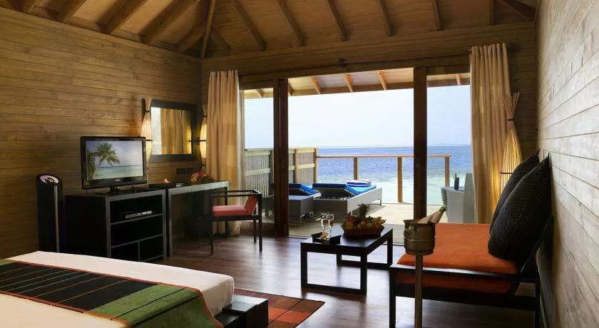 30 Jacuzzi Water Villa (85 м2, макс. 3 чел.). Надводные виллы, расположенные в лагуне. Большая спальня, пол – дерево, iPod док-станция, кофемашина для эспрессо, ванная комната находится частично под открытым небом, терраса с шезлонгами, прямой спуск в океан и приватный участок на открытом воздухе с джакузи для двоих.