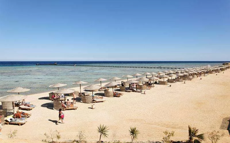 Собственный песчано-галечный пляж протяженностью 800 метров, на пляже зонтики, шезлонги, матрасы, пляжные полотенца бесплатно, есть кораллы и понтон. Рекомендуется специальная обувь для входа в море.