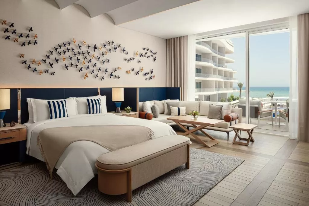 The St. Regis Al Mouj Muscat Resort предлагает 250 (201 номер и 49 люксов) роскошно оформленных номеров и люксов, включая дуплексы с одной, двумя и тремя спальнями.