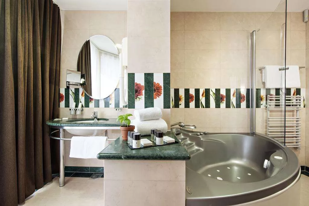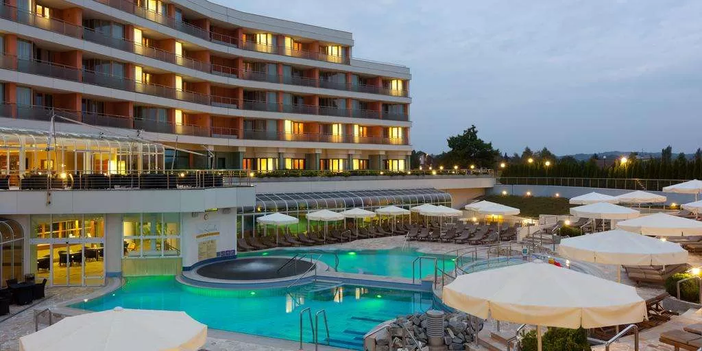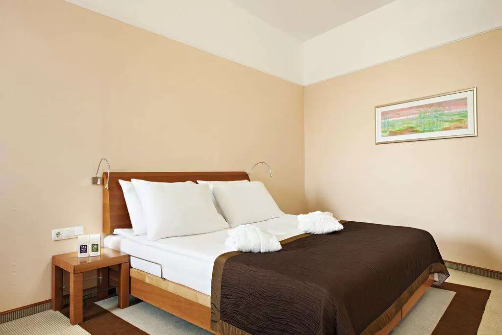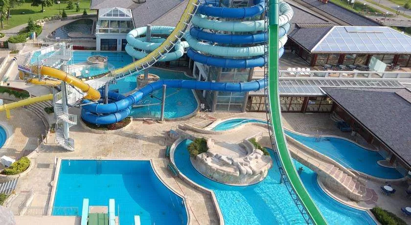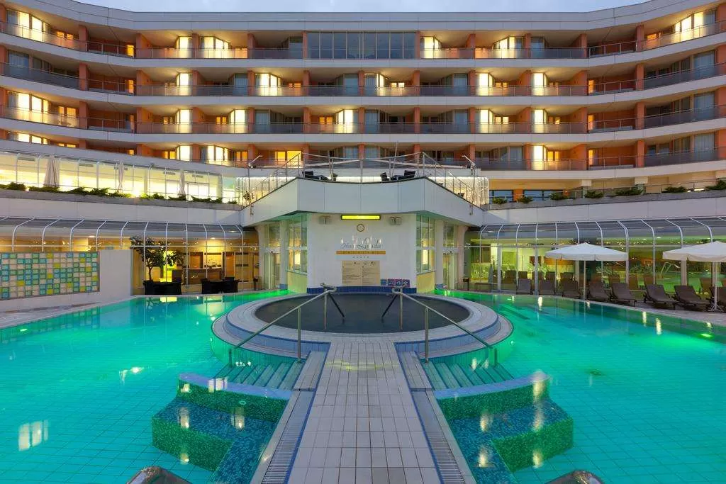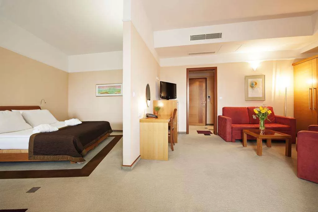 У гостиницы обширная территория с великолепно развитой инфраструктурой. Водно-оздоровительный комплекс отеля состоит из 2-х крытых и 4-х закрытых бассейнов (один из них – с черной термальной водой), пляжа в стиле амфитеатра, фитнес-центра, галереи саун (классическая, финская, инфракрасная, турецкая, сауна с лечебными травами). СПА центр, в котором можно принять ванны со знаменитой черной минеральной водой, которой славятся термальные источники Моравске Топлице. Такие ванны можно принять и в большинстве номеров отеля.