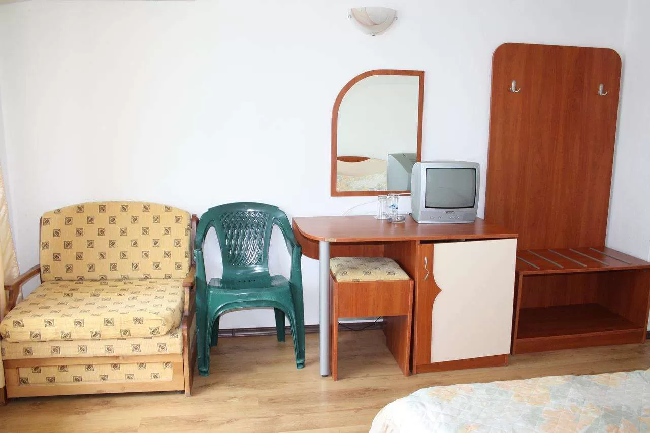 Кондиционер. TV. Мини-бар (платно). Интернет. Балкон или терраса (стол + 2 стула). Дополнительная кровать – раскладное кресло/раскладушка. Возможность поставить двухместную дополнительную кровать. Утюг. Душ. На полу – ламинат/ковролин. Уборка – каждый день. Смена полотенец – каждые 4 дня. Смена постельного белья – каждые 4 дня.