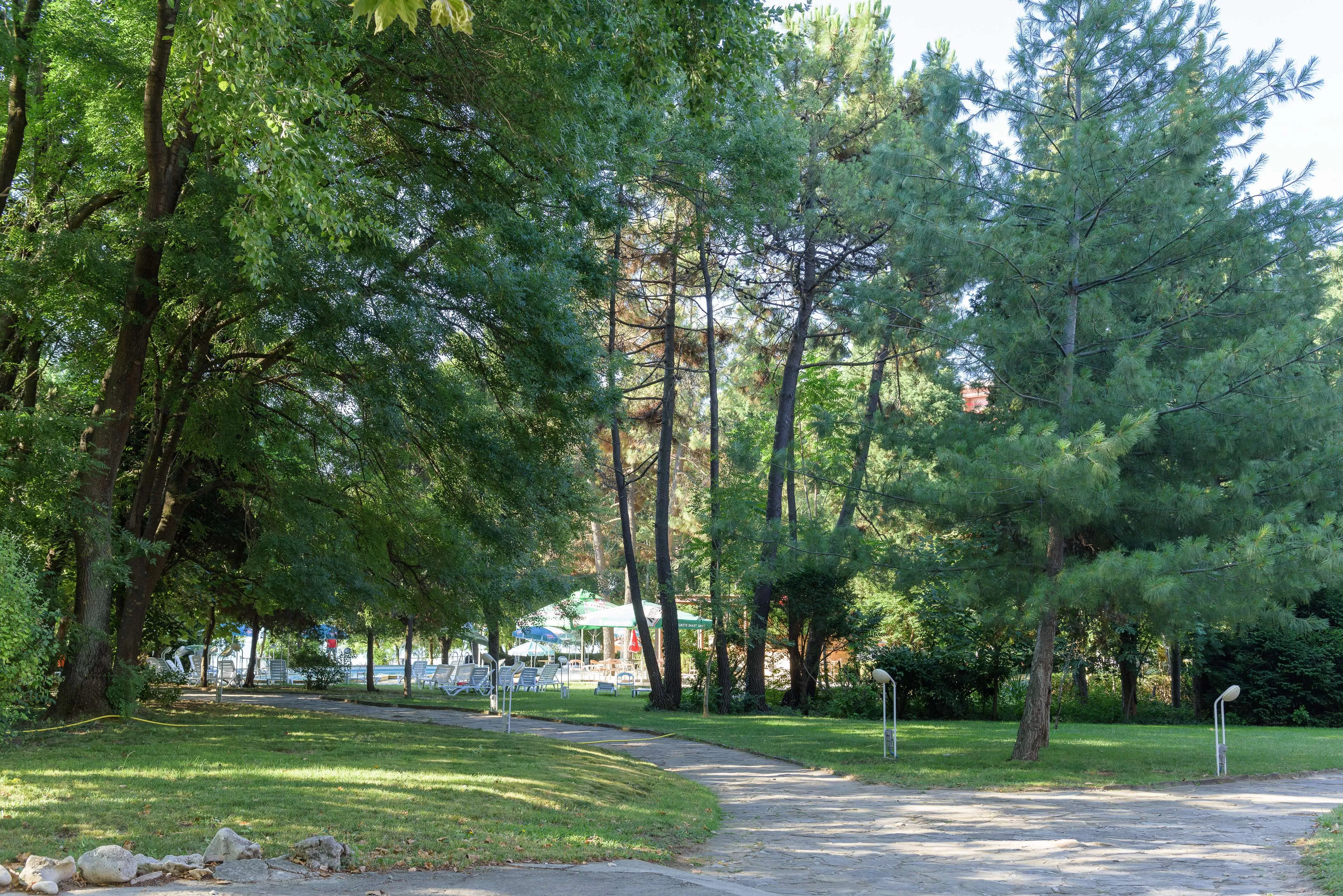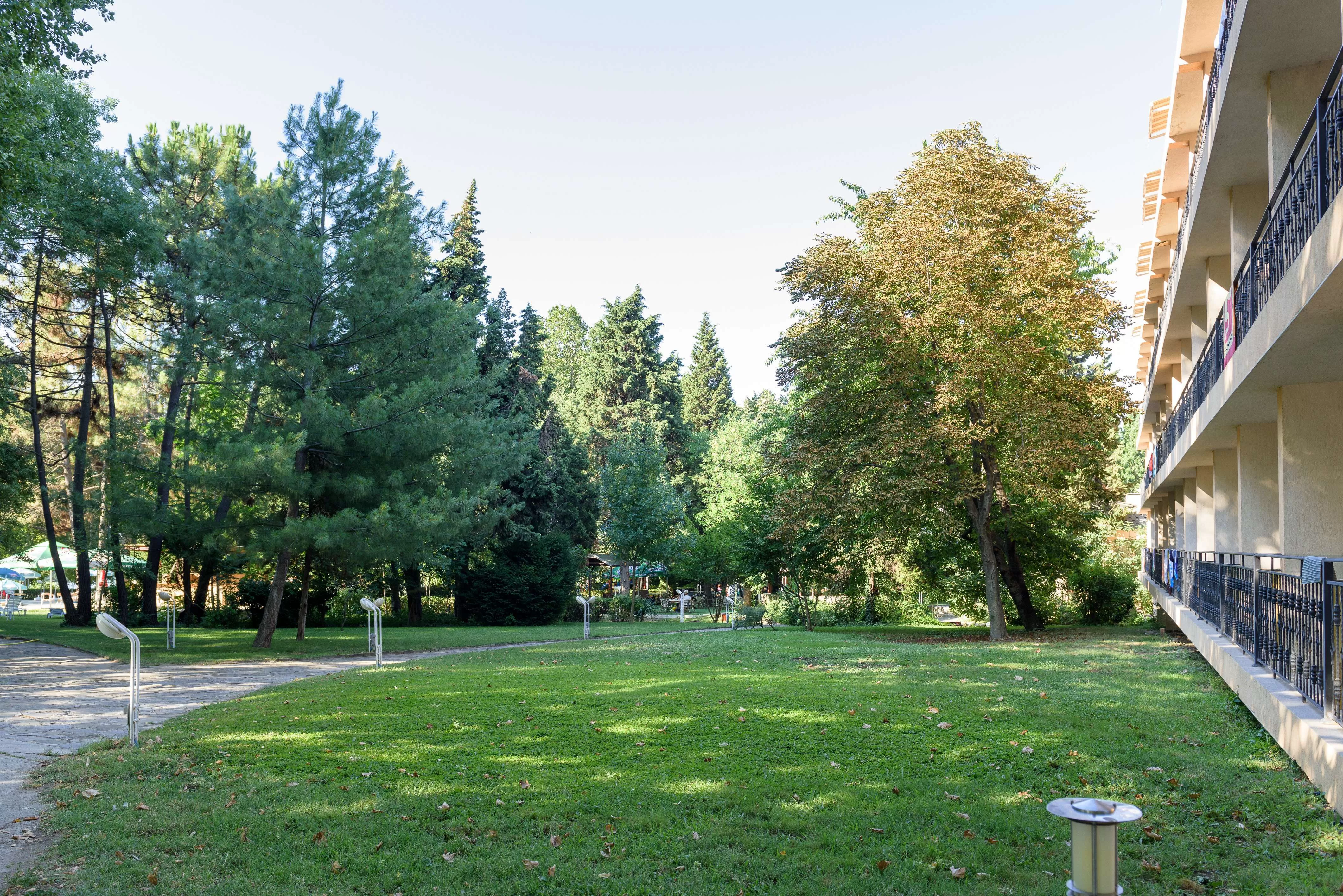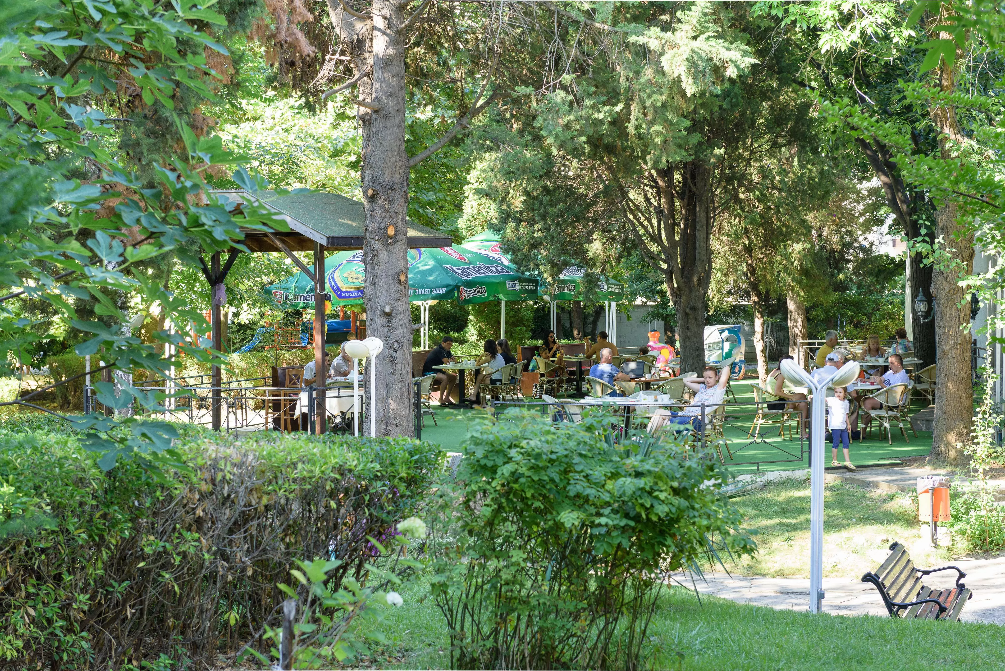 Основной ресторан предлагает меню с болгарскими и европейскими блюдами, которые подаются по системе "все включено". Ресторан располагает широким крытым зимним садом и впечатляющей террасой на фоне красивой зелени парка.
