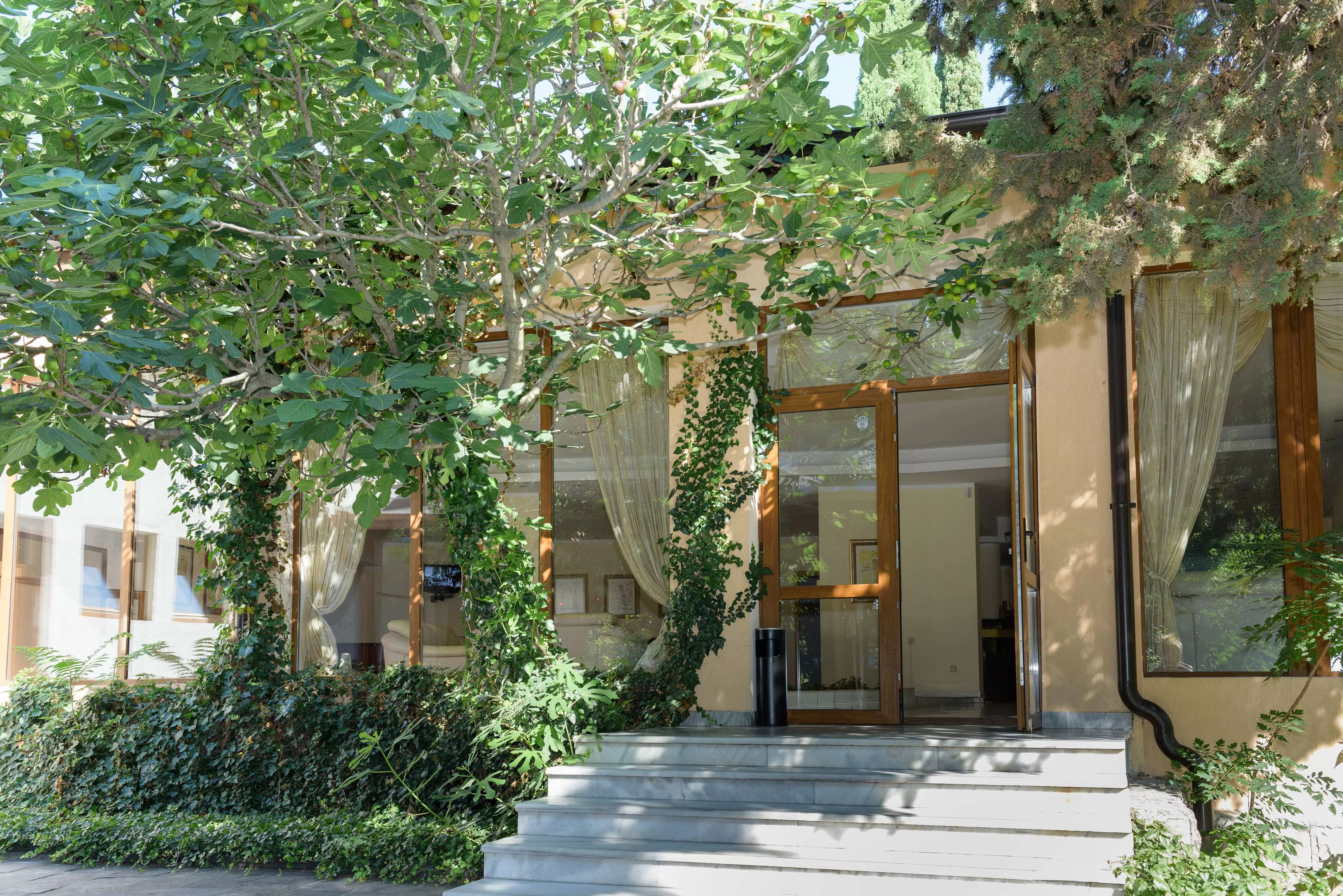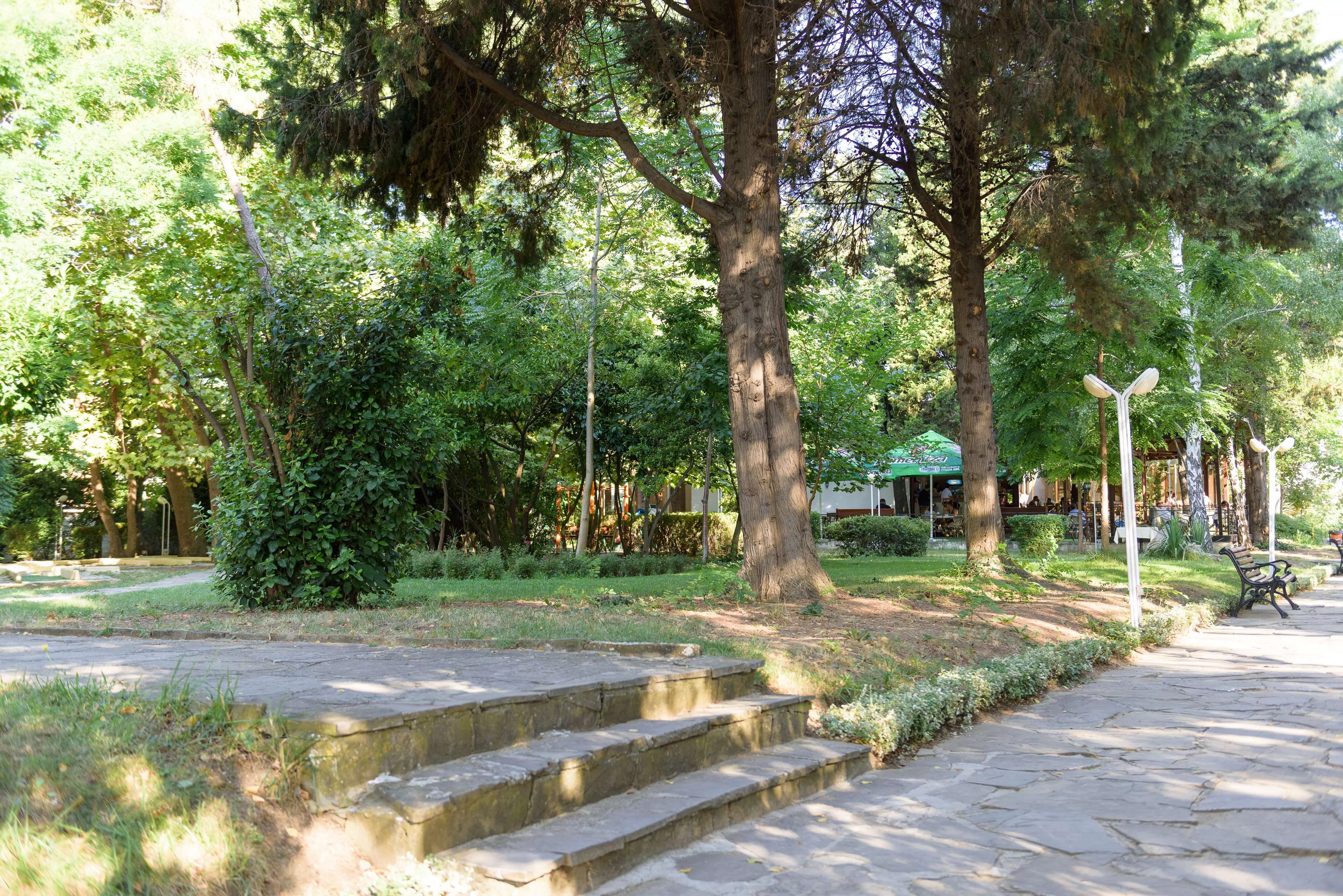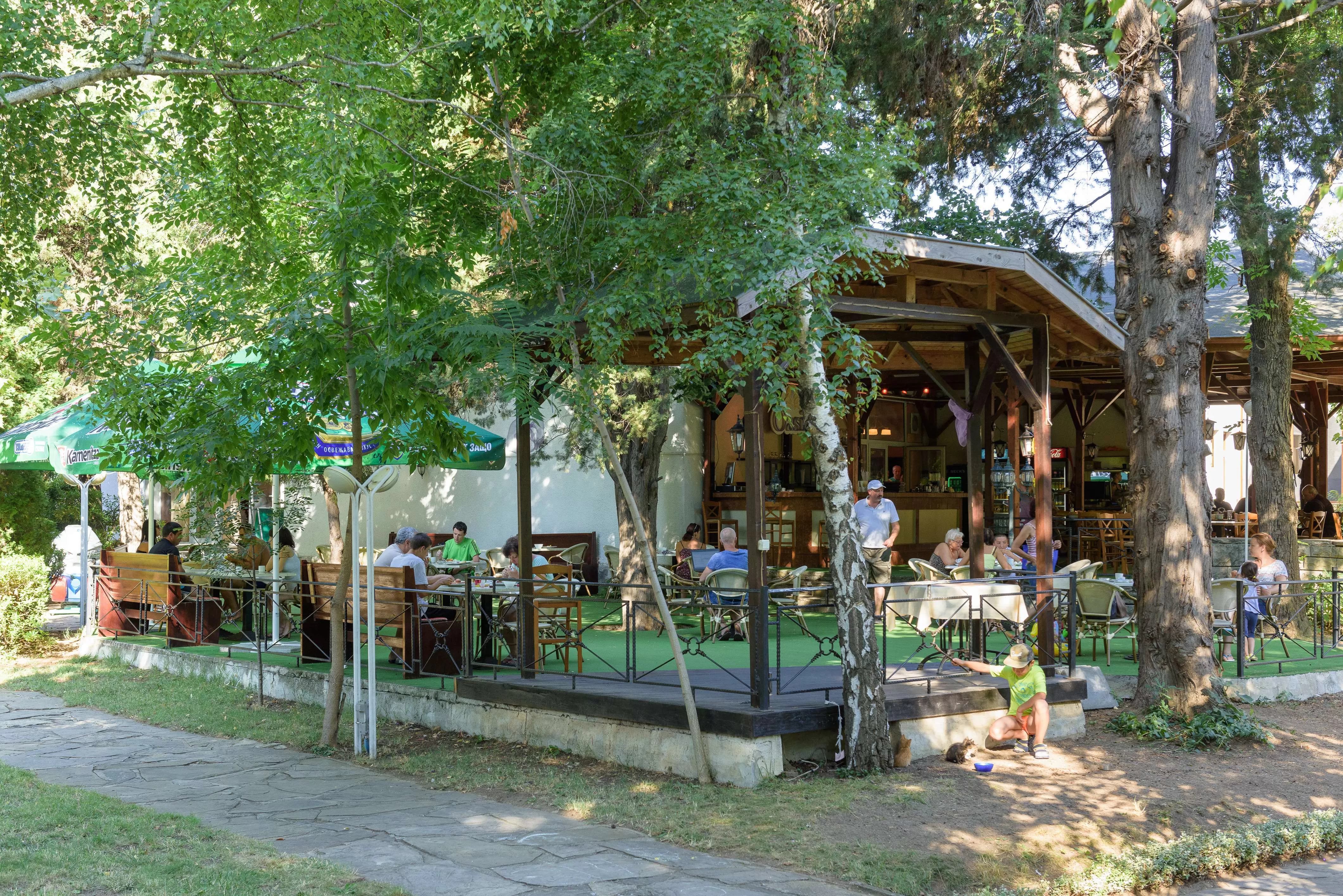 Основной ресторан предлагает меню с болгарскими и европейскими блюдами, которые подаются по системе "все включено". Ресторан располагает широким крытым зимним садом и впечатляющей террасой на фоне красивой зелени парка.