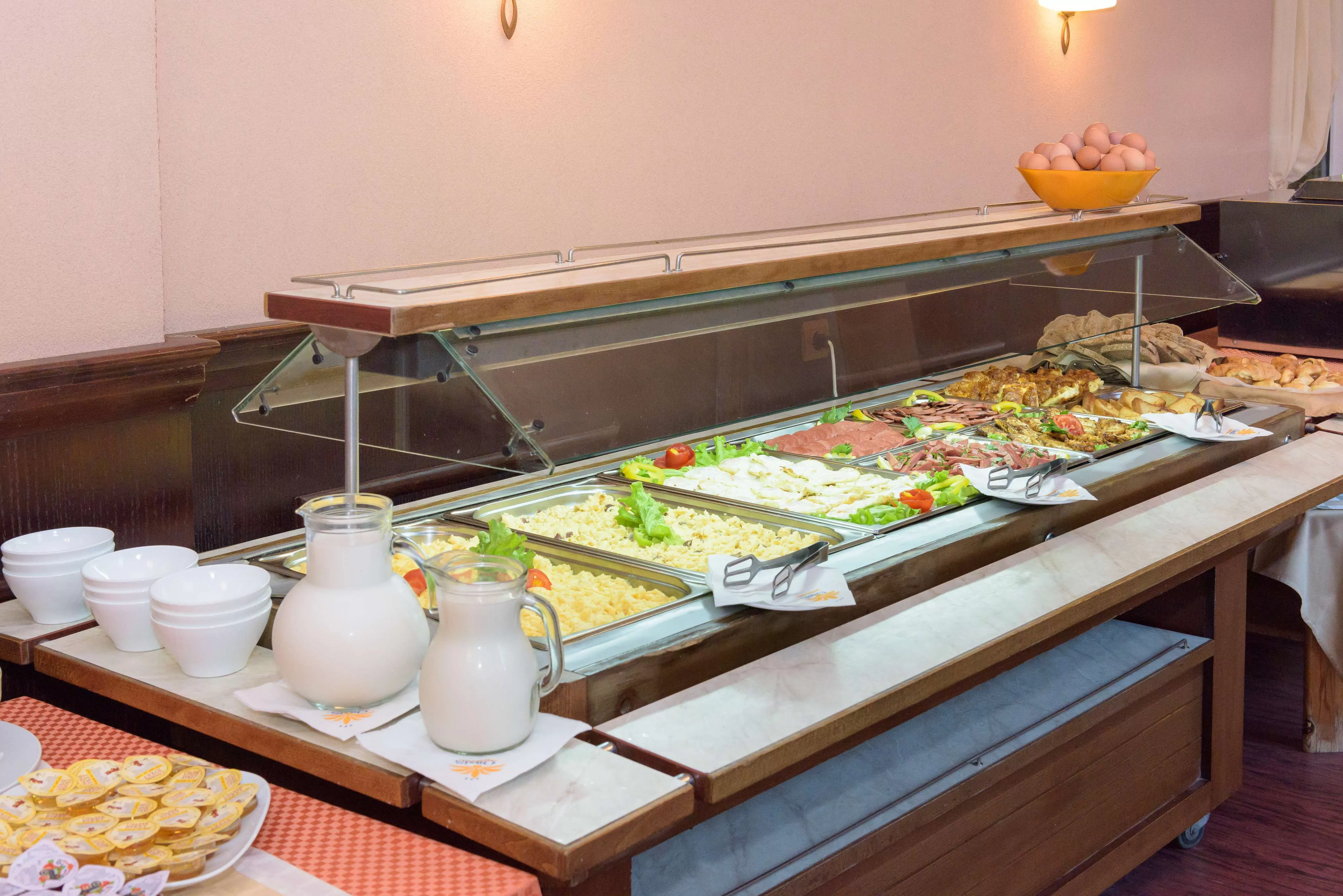 BB / All Inclusive. Завтрак: 08:30 - 10:00 - включает свежие фрукты и овощи, колбасы, макаронные изделия, молочные продукты, крупы, горячие макароны, варенье, джемы, мед, соки, газированные напитки, горячие алкалоидные и неалкалоидные напитки . Обед 12:00 - 13:30 - включает в себя разнообразные холодно - горячие закуски и основные блюда болгарской национальной, европейской и средиземноморской кухни, а также различные виды пасты. Различные супы, рыбные блюда, горячие и холодные гарниры. Различные десерты. Горячие алкалоидные и неалкалоидные напитки, соки, газированные напитки, пиво, вино, спиртные напитки, ликеры.