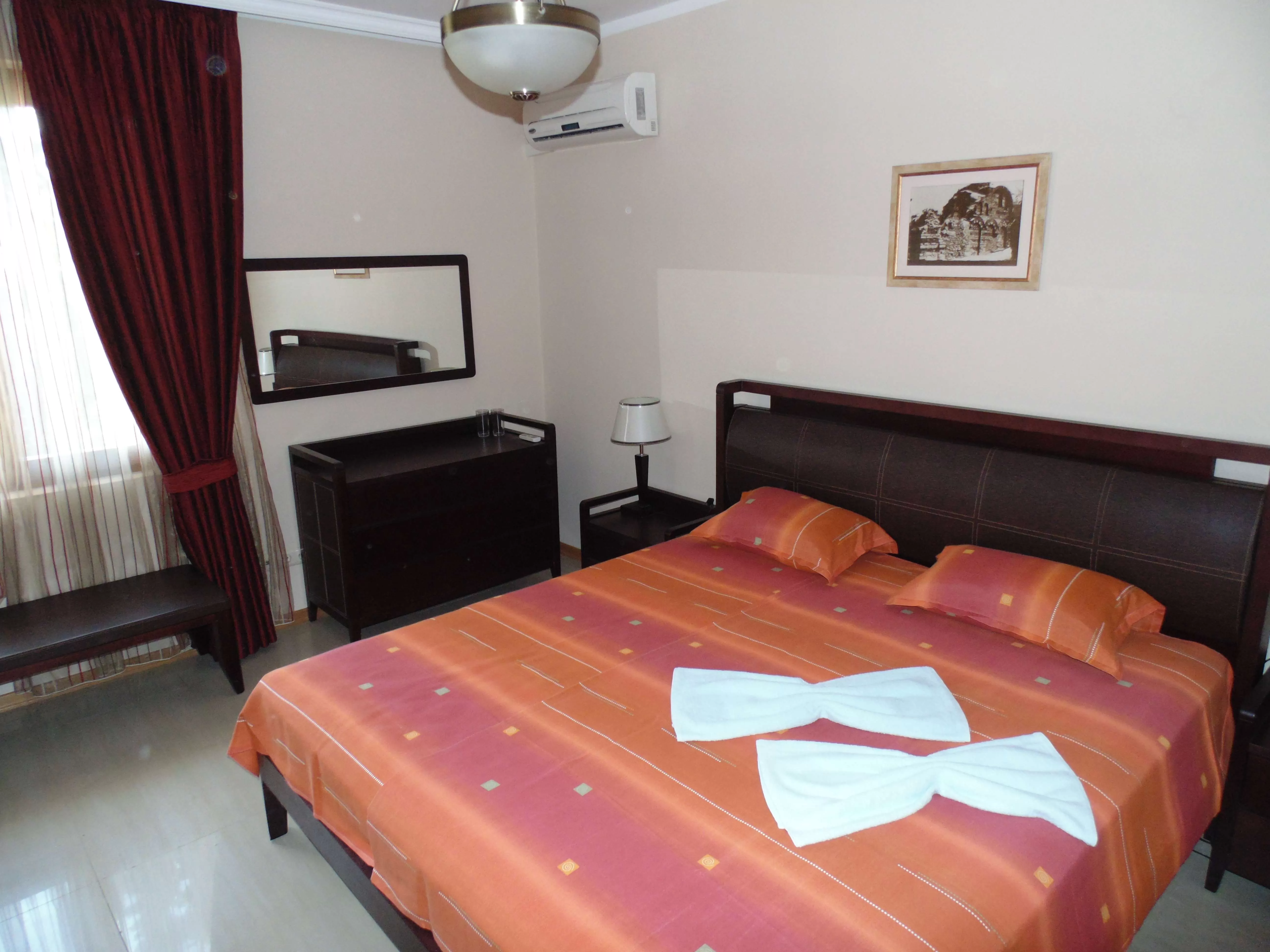 В номере: кондиционер, телевизор, телефон, мини-бар, ванна или душ, пол-плитка.