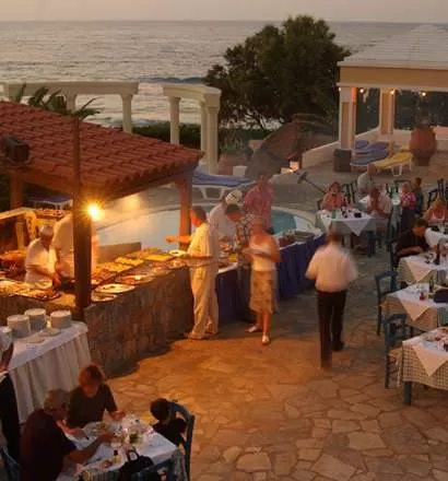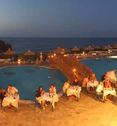 Автостоянка; конференц-зал на 120 мест; бар центральный; бар на пляже и бар у бассейна; ресторан центральный; таверна на пляже.