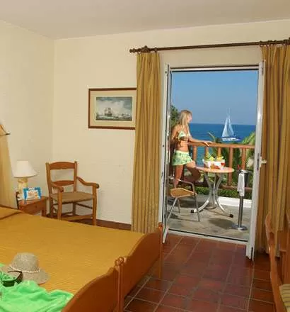 Standard Room (~24-27 кв.м) Мраморная ванная комната (ванна/душ), фен, прямой телефон, бесплатный Wi-Fi, спутниковое телевидение (российский канал), сейф (за доплату), холодильник, кондиционер (с индивидуальным управлением), балкон/терраса, вид на сад или море. Superior Room (~29-32 кв.м) Более просторный номер.