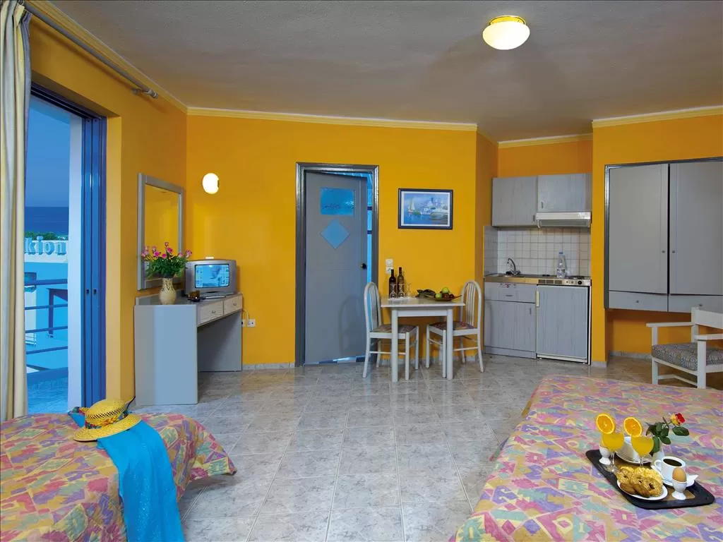 В 2 км от пос. Аделе, в 9 км от г. Ретимно, в 60 км от города Ханья и в 85 км от международного аэропорта «Никос Казандзакис» г. Ираклион. Отель обновлен в 2013 г.