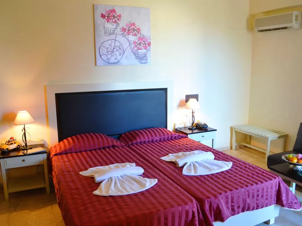 Северное побережье острова, курортное местечко Пиги, в 8,5 км от г. Ретимно, в 71 км от г. Ираклион и в 69 км от г. Ханья, в 76 км от аэропорта Ираклиона и в 69,5 км от аэропорта г. Ханья. Центральное здание и 5 двухэтажных зданий бунгало.