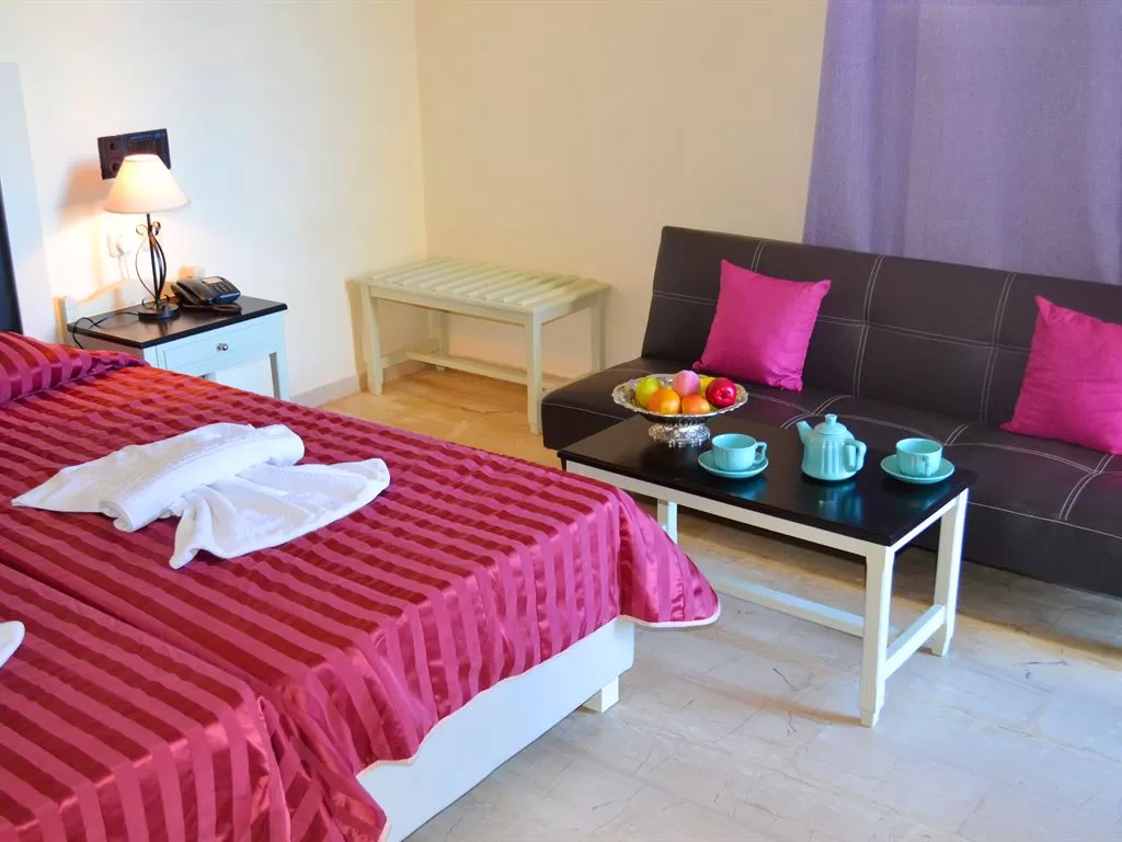 В номерах: кондиционер, прямой телефон, спутниковое телевидение (российские каналы), сейф (за доплату), мини-холодильник, ванная комната (ванна/душ), фен, платный Wi-Fi интернет, балкон/терраса. 2 односпальные кровати или двуспальная кровать.