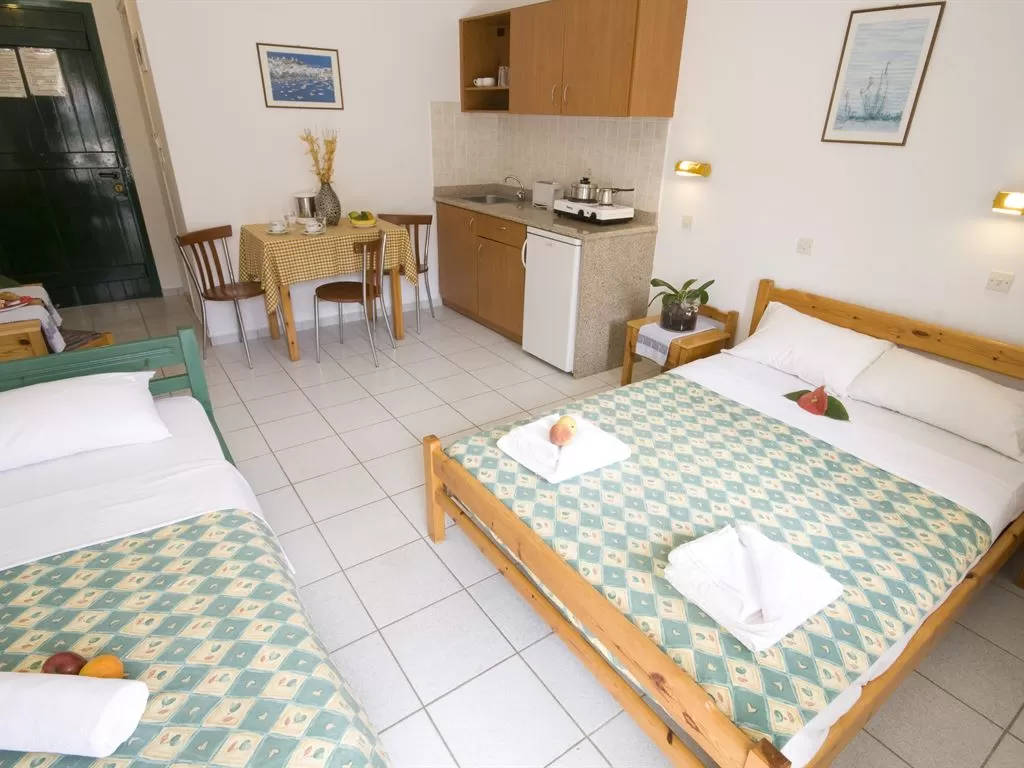 Всего 28 номеров: Studios 2 pax (~17 кв.м), Studios 3 pax (~23 кв.м), Maisonette/Apartments 2-Bedroom (~38 кв.м).
