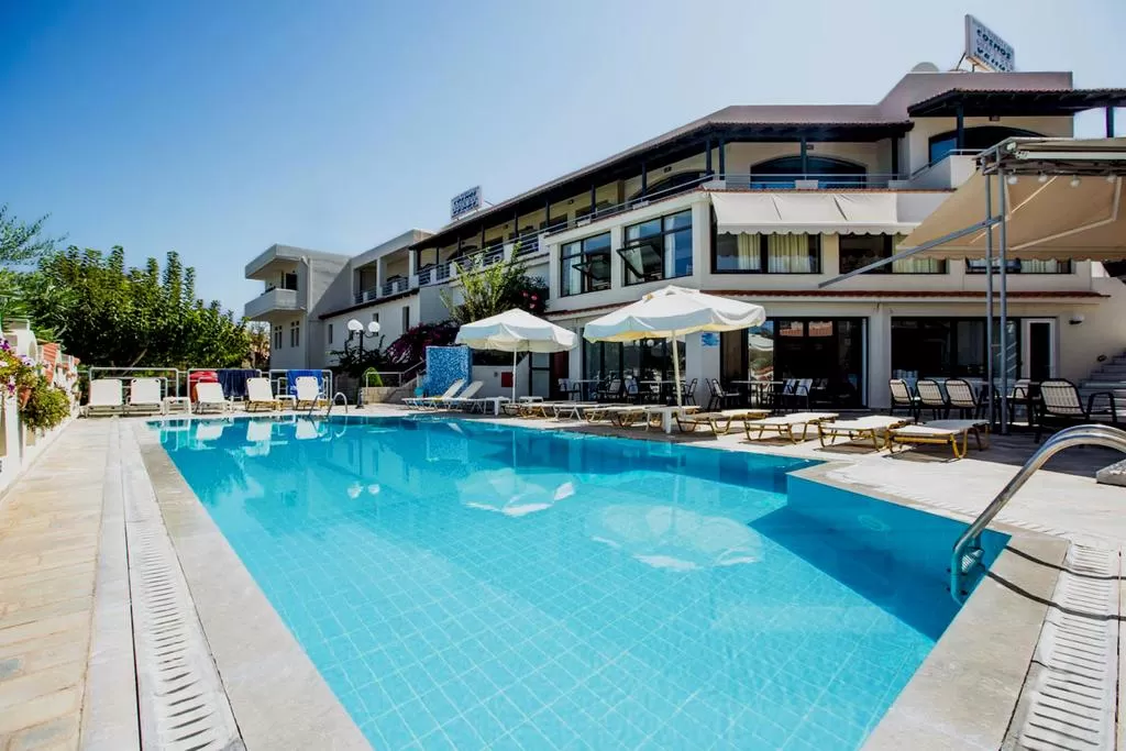 в 22 км от аэропорта г. Ираклион, в 41 км от центра г. Агиос-Николаос, в 2 км от г. Херсониссос. Автобусная остановка находится в 100 м от отеля.