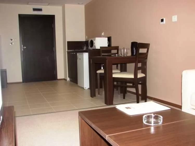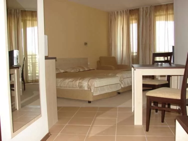 В студио: доп. кровать (кресло-кровать), центральный кондиционер, спутниковое TV, телефон, интернет-связь/Wi-Fi (бесплатно), санузел с душем и феном, балкон, пол – ковровое покрытие, керамическая плитка, уборка номера – ежедневно, смена постельного белья – 3 раза в неделю, смена полотенец – 3 раза в неделю.