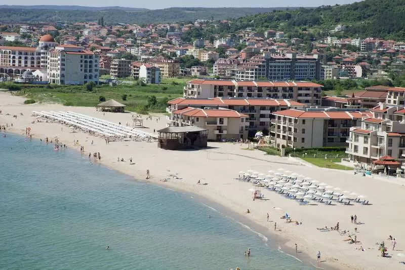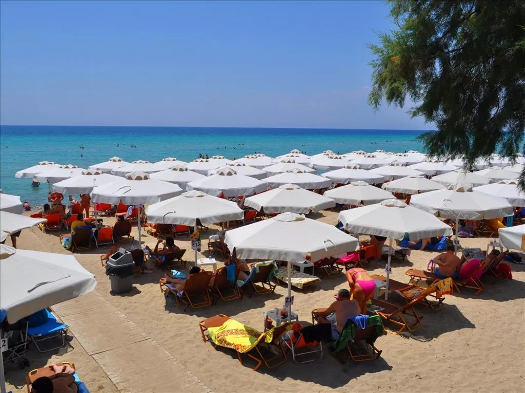 Собственный песчаный; зонты, шезлонги с матрасами – бесплатно. У бассейна: зонты, шезлонги – бесплатно.