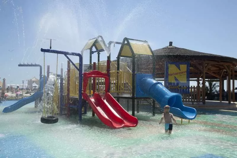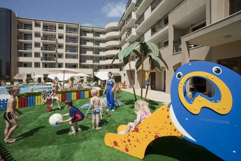 Детское меню, детская кроватка (бесплатно), детский стульчик для кормления, 2 детских бассейна, водные горки, детская площадка (искусственное покрытие, противоударное, площадка укрыта от солнца навесом), мини-клуб (6 раз в неделю с 10.00-12.30 & 15.00-17.00 ч.), детские ясли для детей от 6 до 36 месяцев (за доп. плату), детский сад, подогрев молока.