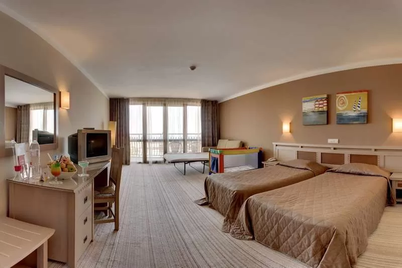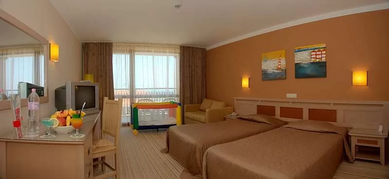 В номере: центральный кондиционер, спутниковое TV, телефон, сейф (за доп. плату), Wi-Fi (бесплатно), балкон, санузел с душем и феном, пол – ковровое покрытие, керамическая плитка, уборка номера – ежедневно, смена постельного белья – 2 раза в неделю, смена полотенец – ежедневно.