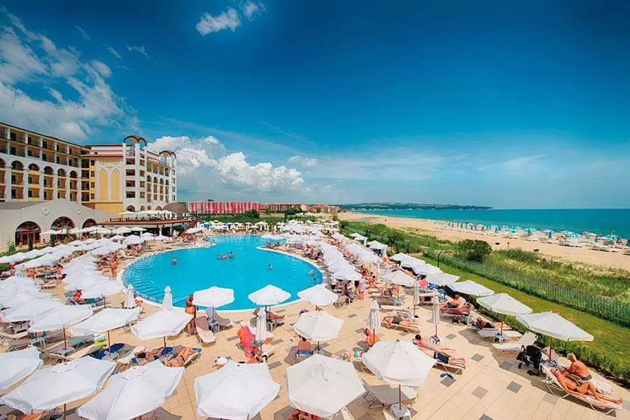 Отель расположен на первой береговой линии, в 50 м от торгового центра, в 500 м от центра Обзора, в 34 kм от центра Солнечного берега, в 60 от аэропорта Бургаса.