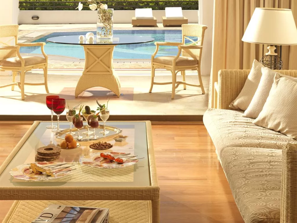Включенные напитки: греческое пиво, вино, вода, безалкогольные напитки, концентрированные соки и апельсиновый фреш, Метакса, узо, раки (обслуживание) |