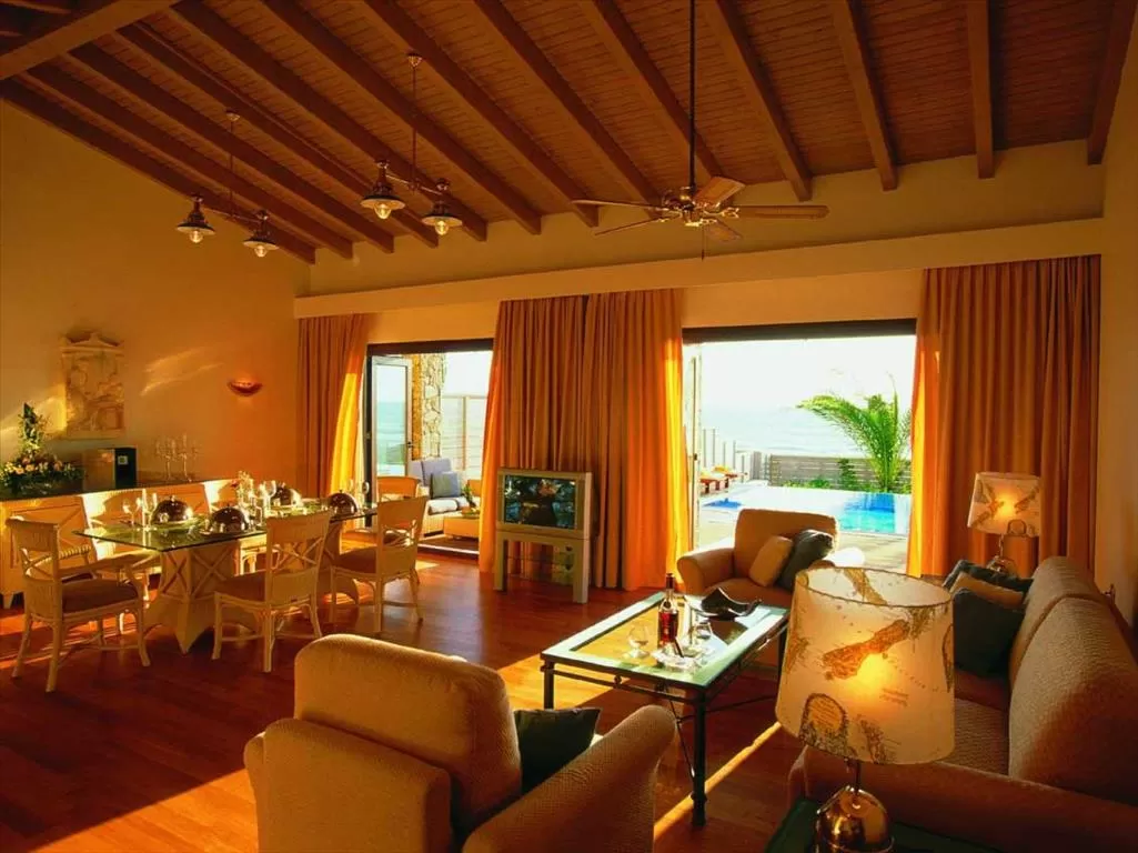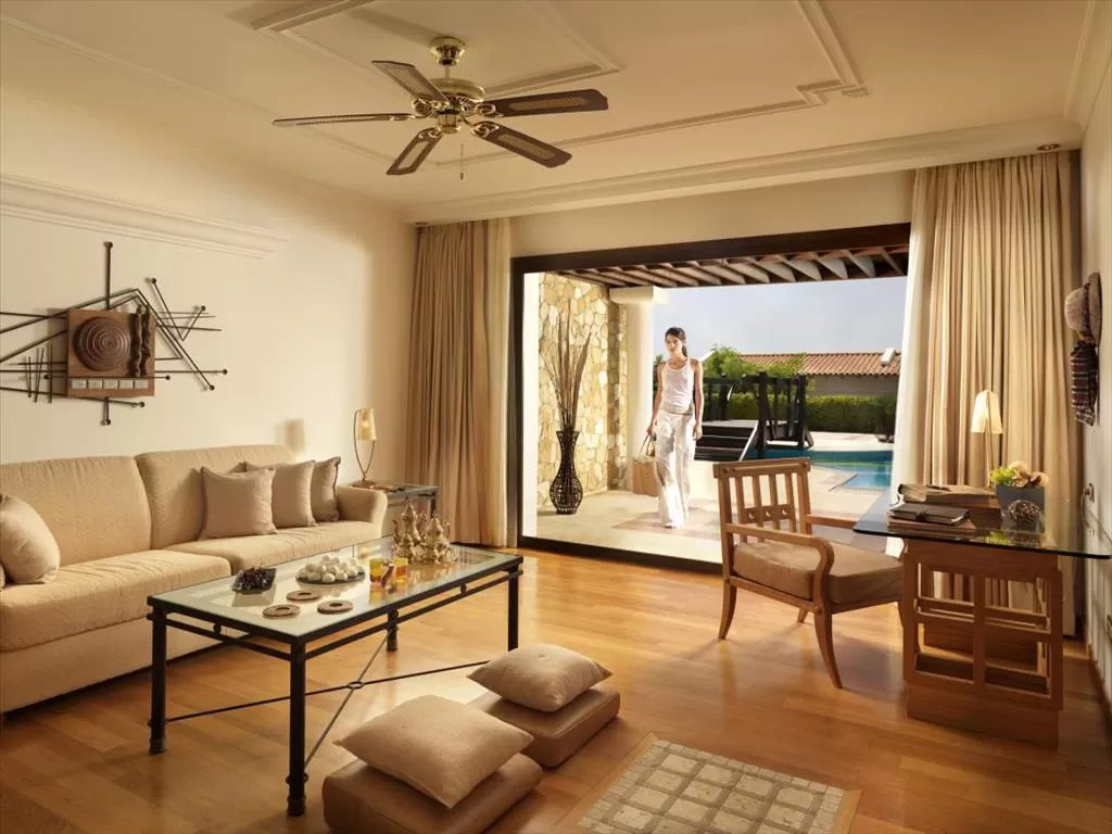Main Building Suite Pool Front or Sea View У бассейна, в основном здании, спальня, гостиная/столовая/кабинет, ванна с джакузи,WC/душ, тапочки и пляжные полотенца.