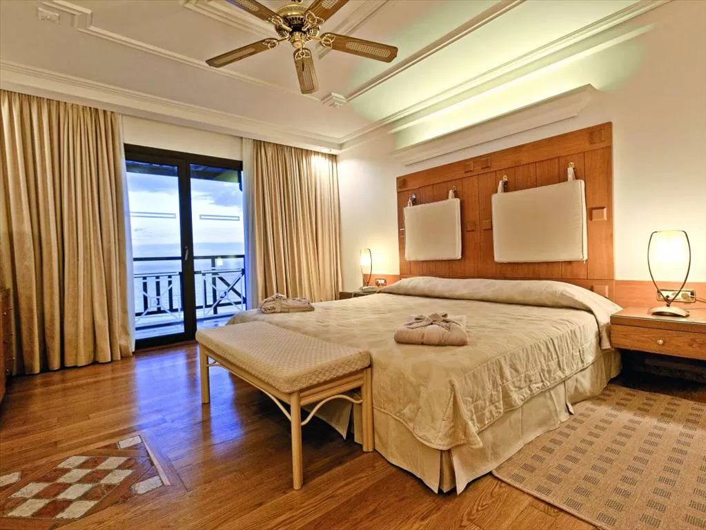 Всего 118 номеров: Double Rooms MB Garden View (~28,8 кв.м), Double Rooms MB Sea View (~28,8 кв.м), Double Rooms MB Pool Front (~28,8 кв.м), Main Building Suites Pool Front or Sea View (~53 кв.м), Suites Superior MB Sea Front (~53 кв.м), Suites Ilis with Sharing Pool (~53 кв.м), Suites Family Atlantis (~92 кв.м), Suites Ira (~75 кв.м), Suites Olympia (~75 кв.м), Suites Phaidra (~110 кв.м).