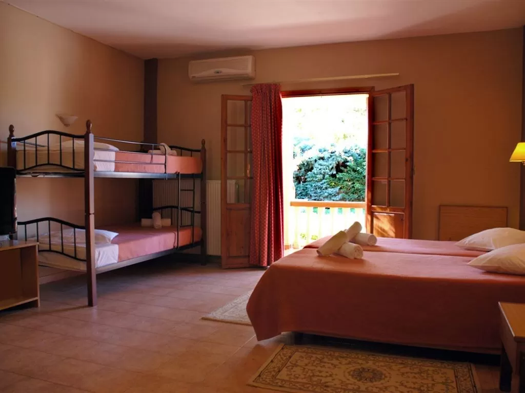 Всего 22 номера: Double Rooms GV/SV (~14-18 кв.м), Triple Rooms GV/SV (~25 кв.м), Quadruple Rooms GV/SV (~28 кв.м), Studios GV (~25 кв.м).