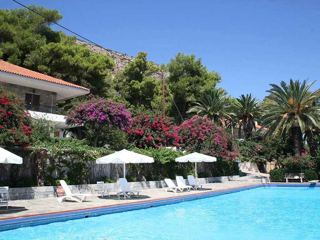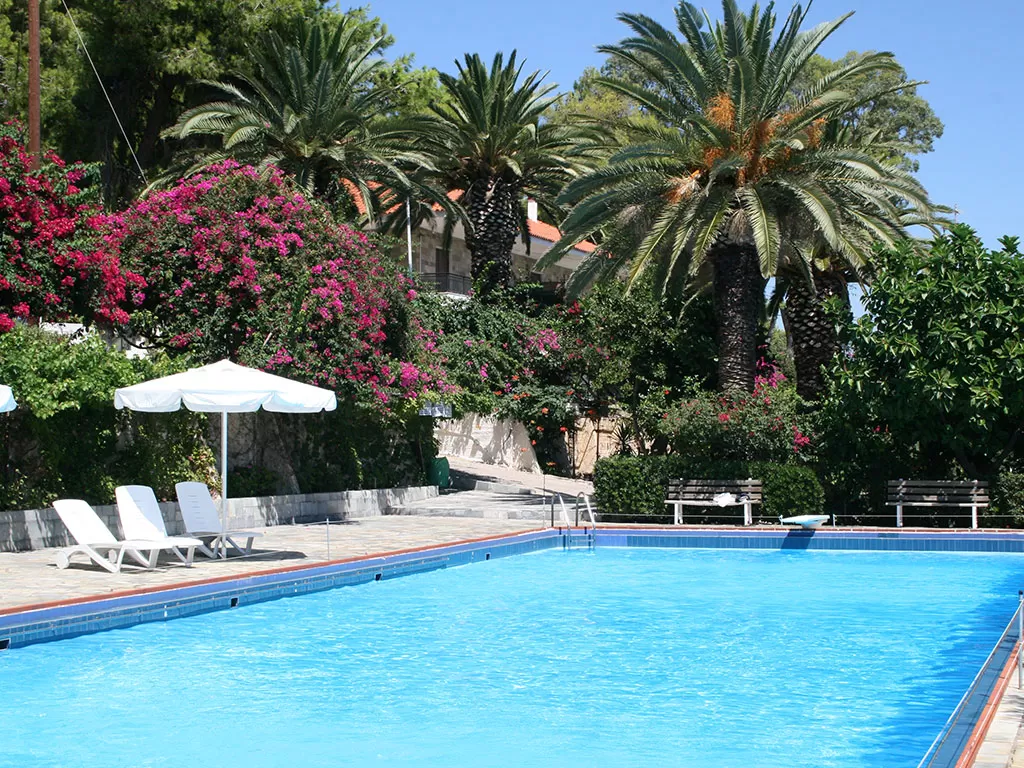 Небольшой отель в традиционном стиле. Обширная территория, просторные номера, бассейн, интернет, теннисный корт, качественное обслуживание.
