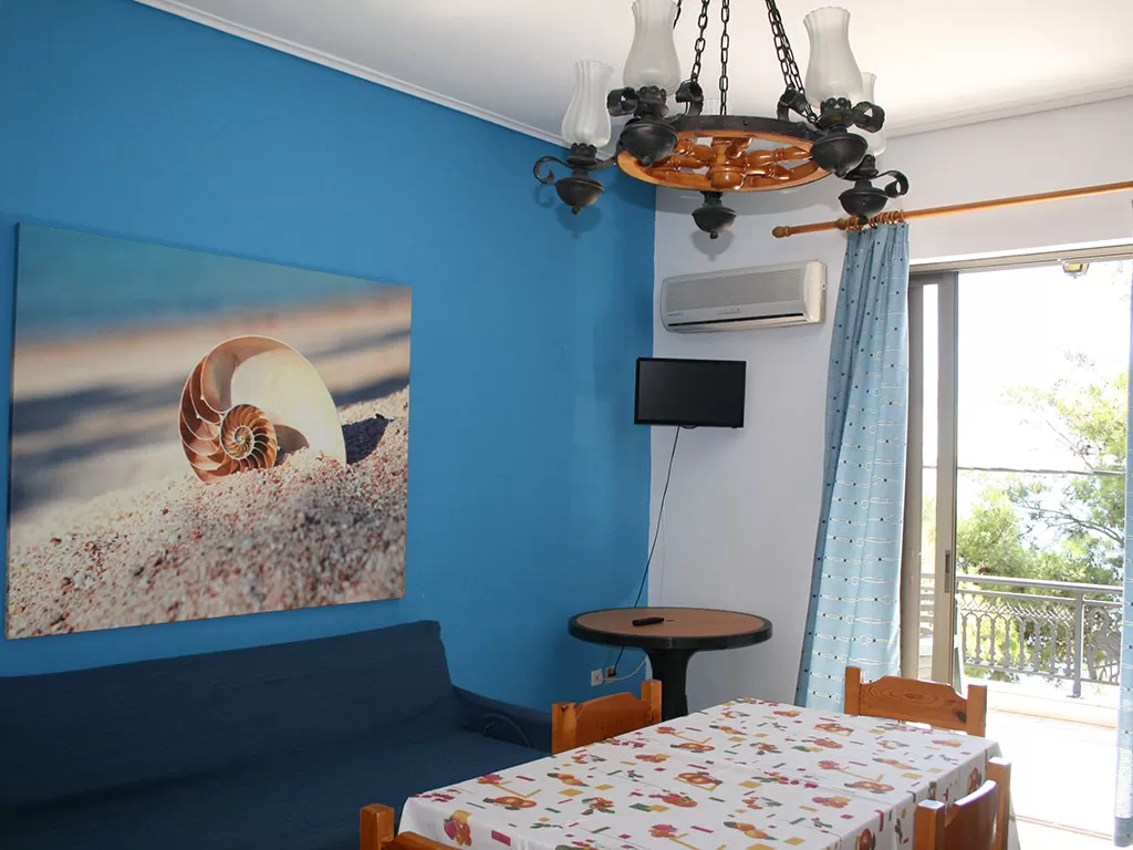 Всего 25 номеров: Studios (~20 кв.м), Studios Large (~40 кв.м), Apartments 2-Bedrooms (~70 кв.м), Apartments Grand 2-Bedrooms min 5 pax (~100 кв.м).