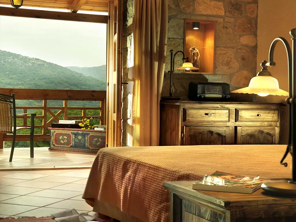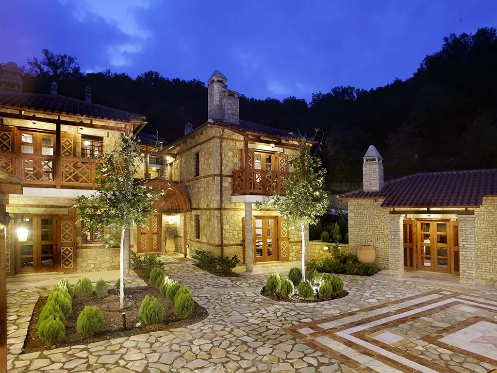 Познайте греческое гостеприимство! Всё здесь находится в полной гармонии с окружающим пространством: здания каменной кладки с черепичными крышами, комнаты с отделкой под старину, камин, а также изумительный вид на лес. Ресторан, в котором подаётся по-домашнему приготовленная еда; гостиная, где вы можете с друзьями поиграть в настольные игры, библиотека, внутренний дворик, отделанный камнем, и деревянные скамейки... здесь Вы чувствуете себя как дома. Архитектурный стиль комплекса великолепно гармонирует с природным ландшафтом.