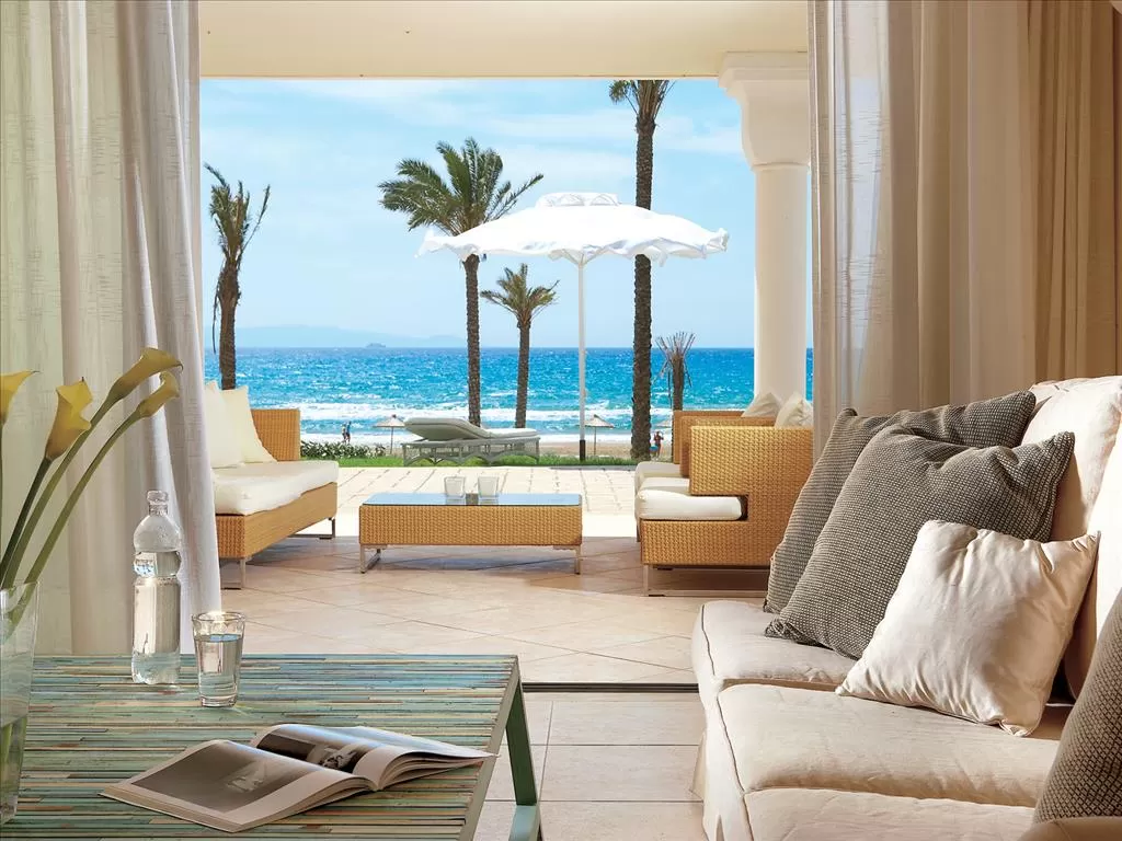 прямой вид на море. Объединяет уютную гостиную (мягкие диваны, кресла) и