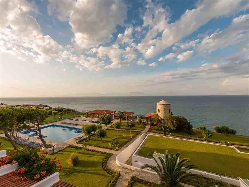 Обширная зеленая территория, традиционный архитектурный стиль, комфортабельные номера, ресторан, таверна, бар у бассейна в виде башни, магазины, спорт, качественное обслуживание. Идеально подойдет для спокойного семейного отдыха.