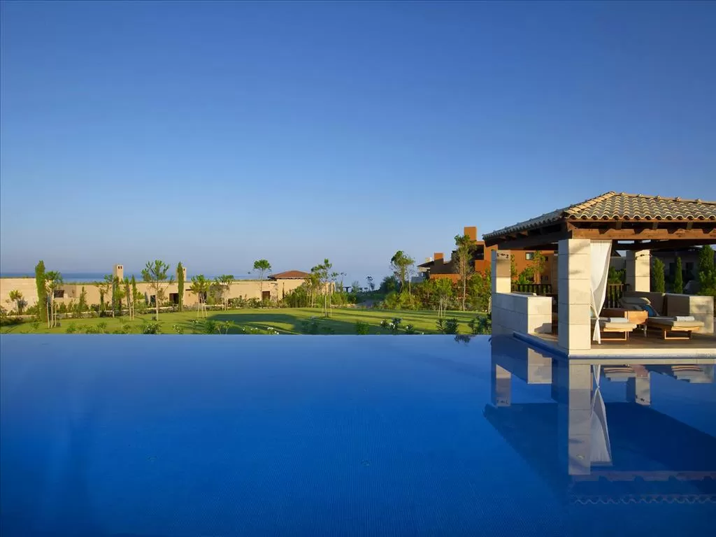 Infinity Room (~43 кв.м) Частный переливной бассейн (23 кв.м), выход на меблированную террасу, вид на сады и оливковые рощи курорта или на поле для гольфа и на море.