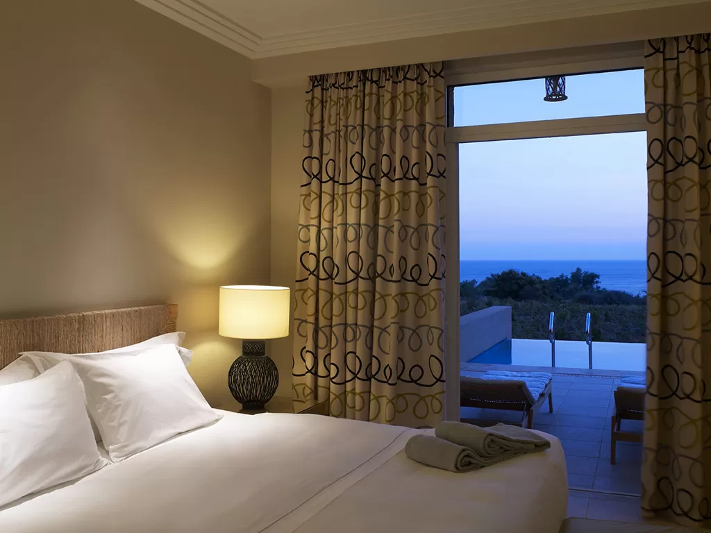 Всего 442 роскошных номеров, в том числе 130 номера с собственными бассейнами и Королевская Вилла Methoni.