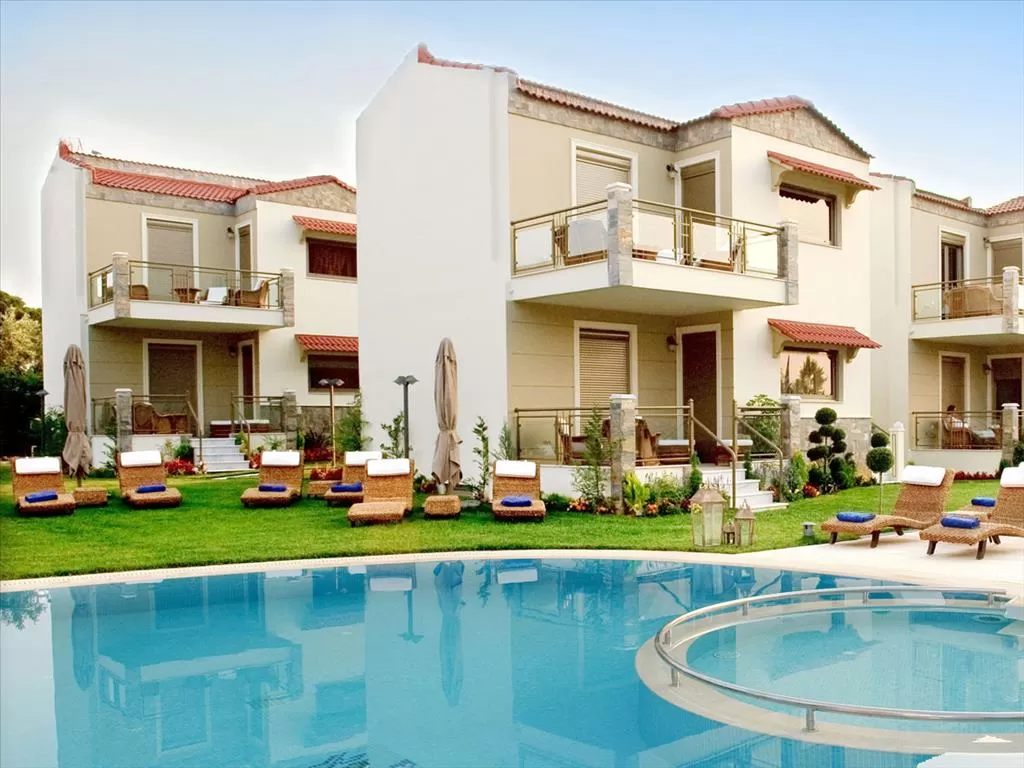 Изысканный комплекс для незабываемого отдыха. Красивая обширная зеленая территория, 9 двухэтажных зданий, декоративные растения, богатый газон и маленький пруд с тропическими рыбками, таверна, бассейн, детская площадка, бар, интернет. Просторные комфортабельные номера, каждый из которых с индивидуальным дизайном;мебель, интерьер, а также текстиль выбраны с особой тщательностью и вкусом.