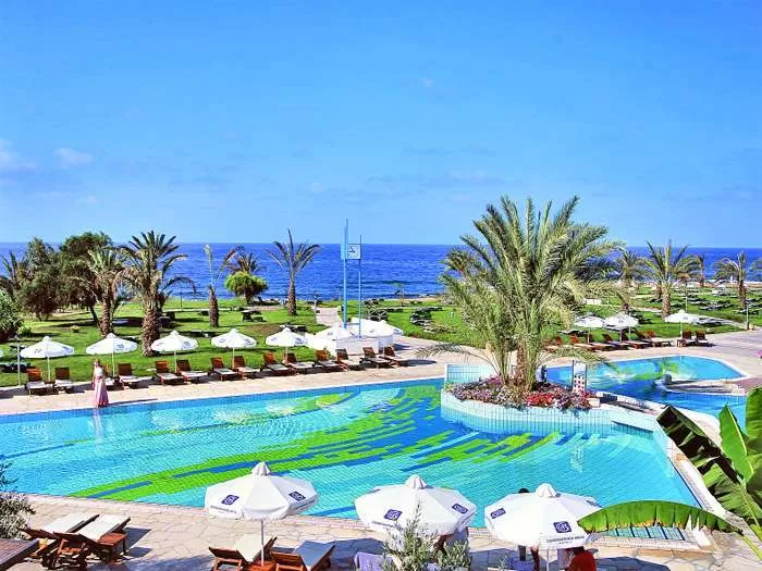 На берегу моря, в спокойной туристической зоне Пафоса. Ближайшая остановка автобуса находится в 5 м от отеля.