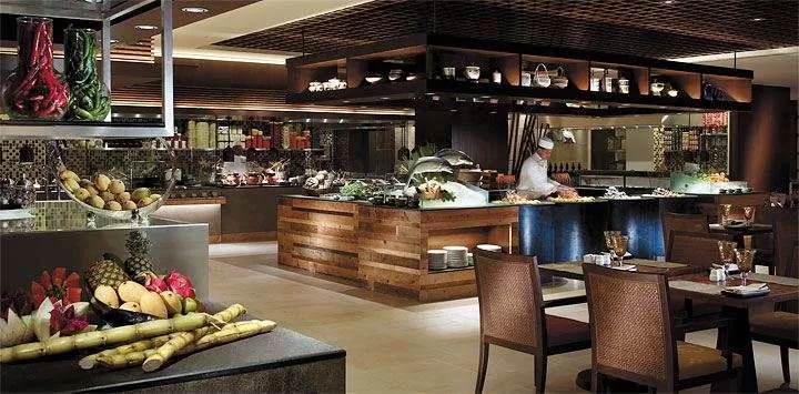Ресторан " Feringgi Grill": расположен в мезонине, корпус RasaSayang, имеет две приватные комнаты на 20 человек. Предлагает блюда европейской кухни и различные вина. Курение на территории ресторана строго запрещено. часы работы: завтрак с 07:00 до 10:30, ужин с 18:30 до 22:30. Ресторан " SpiceMarket Café": расположен в холле корпуса Garden Wing недалеко от бассейна, имеет раздельные залы для курящих и некурящих и открытую террасу. Предлагает блюда стран, что отражают культурное наследие Пинанга - китайской, индийской, баба-ньонья, японской, тайской и европейской кухни, и все это великолепие - в виде шведского стола. На входе в ресторан расположен бутик специй, где выставлены на продажу более 100 их видов. Часы работы: ежедневно, завтрак с 07:00 до 11:00, ужин с 18:30 до 22:30. Бар " Feringgi Bar": является продолжением ресторана " Ferringhi Grill", предлагает различные коктейли и шампанское. В баре играет живая музыка. Часы работы: ежедневно с 17:30 до 01:00. Бар " LobbyLounge":расположен в холле корпуса GardenWing, имеет внутренни зал и открытую террасу, где разрешено курение. Предлагает широкий выбор освежающих напитков, вин и коктейлей. Часы работы: ежедневно с 18:00 до 00:00. Бар " Pinang": расположен в корпусе GardenWing, недалеко от бассейна, имеет открытую террасу. Предлагает разнообразный выбор легких закусок и напитков. Часы работы: ежедневно с 10:00 до 22:00. Ресторан-бар " TepiLaut": расположен в корпусе RasaWing, курение ртазрешено на всей территории. Дизайн крыши напоминает старые дворцы малайских султанов. Ресторан предназначен только для частных мероприятий.