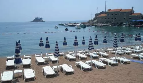 Муниципальный - мелкая галька, песок. На пляже лежаки и зонты платно, а у бассейна бесплатно для гостей отеля.