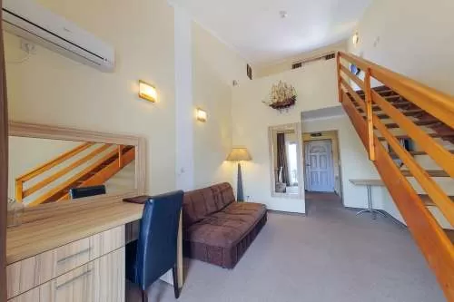 DBL STD: 23м2, с террасой 4м2, кондиционером, ТВ, сейфом, минибаром. APART Duplex: Все апартаменты с кондиционером, телефоном, SAT-TV, ванной комнатой с ванной, феном, мини-баром, сейфом. Двухуровневые апартаменты с 2-мя террасами, одна с видом на море, другая с видом на парк (по 5м2), нет кухни. Размещение – мин. 2 чел.