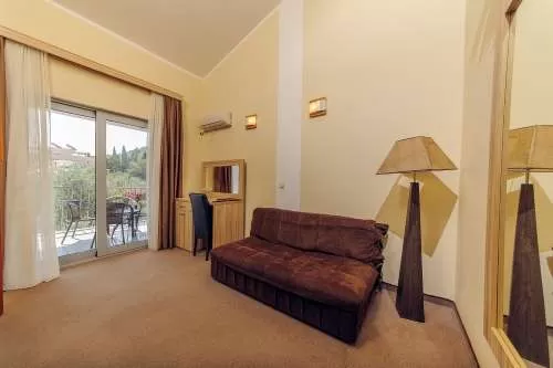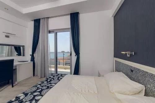 Во всех номерах и апартаментах: LCD TV, бесплатный Интернет, сейф, мини-бар, телефон, центральное кондиционирование, фен. DBL Superior: 30м2, двухместный номер с дополнительной кроватью, терраса с видом на море. Максимальное размещение 3 чел. APP Superior: 60м2, гостиная и спальня, терраса с видом на море, без кухни. Макс. размещение - 4 чел.