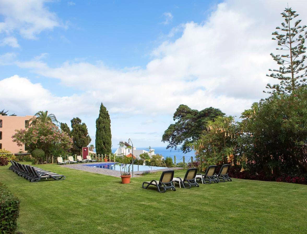 на холме, на юго-восточном побережье Мадейры, в прелестной местности Гаражау с ресторанами, барами и магазинами, возле улицы, ок. 2 км от Канису, ок. 8 км от столицы острова Фуншал, ок. 1 км от природного заповедника Гаражау; ок. 11 км от аэропорта в Санта Крус; автобусная остановка возле отеля (ок. 2,5 EUR/Фуншал).