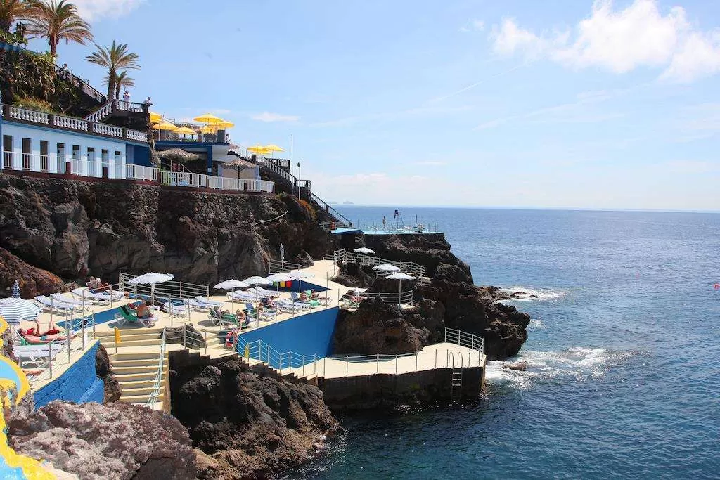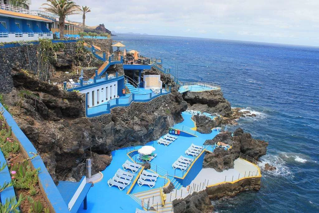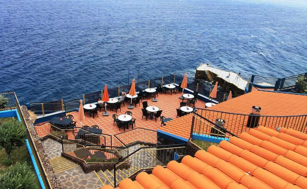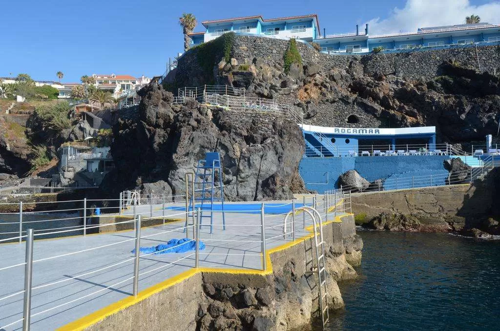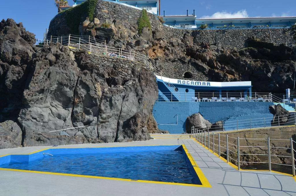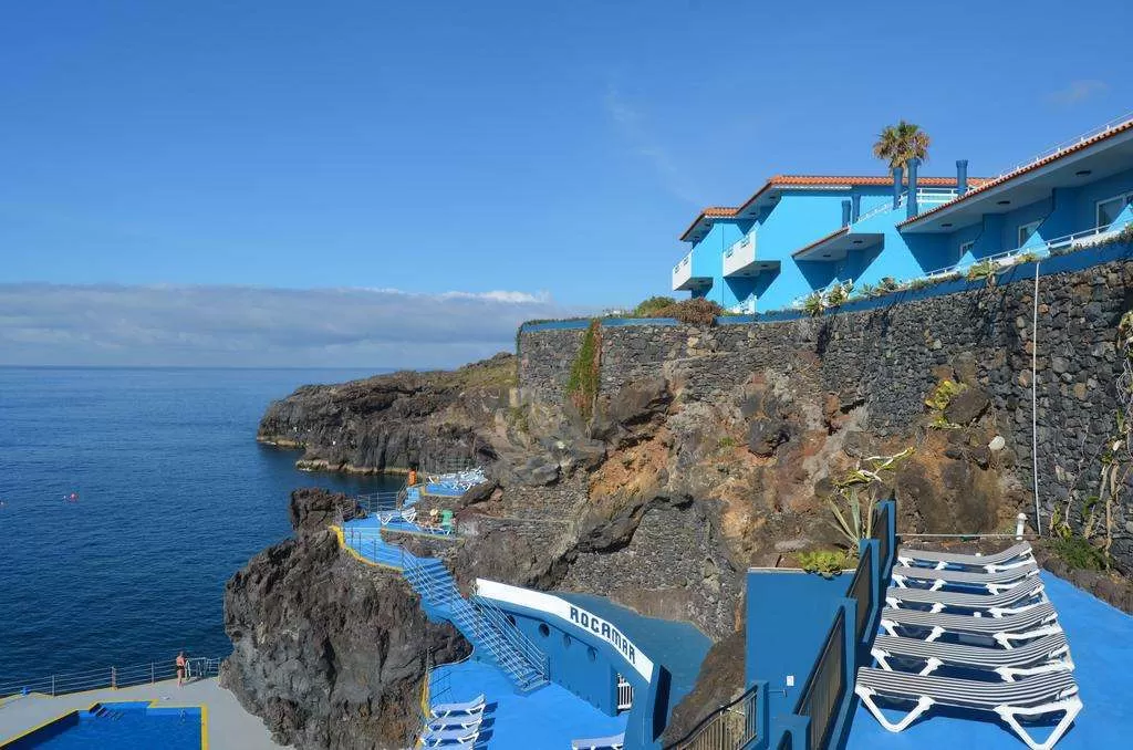 Отель Roca Mar с видом на океан, расположенный в Канису-де-Байшу на скале, оборудован солярием и открытым бассейном.